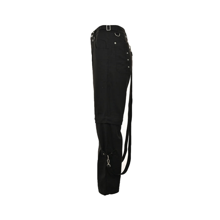 It takes a very long time to make the molds of all the hardware accessories of the pants, especially the electroplating of the lobster buckle of the suspenders. The surface is made of silver-gray semi-matte special coating with YB. YB is also extremely easy to lose paint. The pants have a wide-leg version, detachable trouser legs and combinable suspenders. One pair of pants can be worn in multiple ways to create a workwear high street feel. It is suitable for any leg shape and the upper body is full of aura.