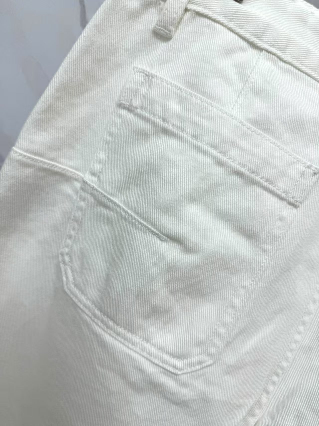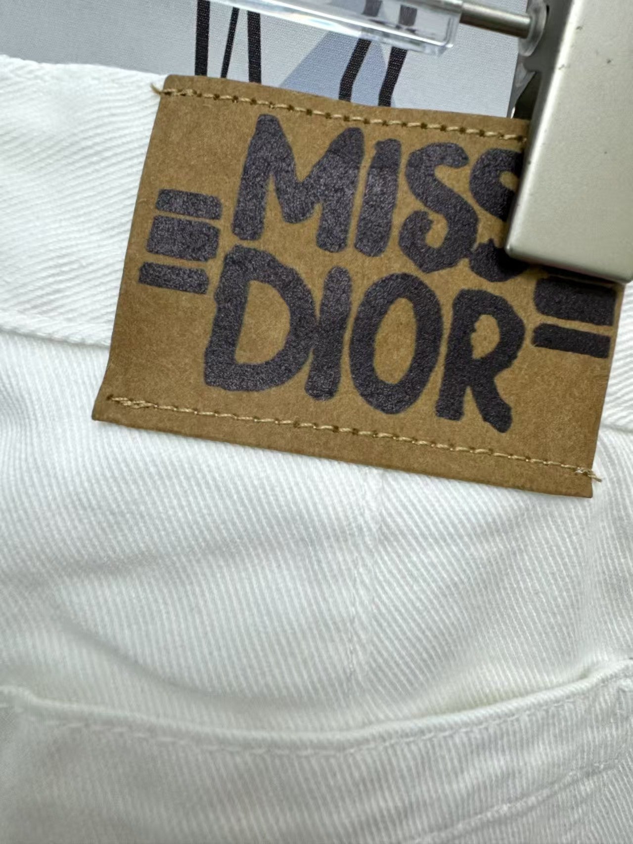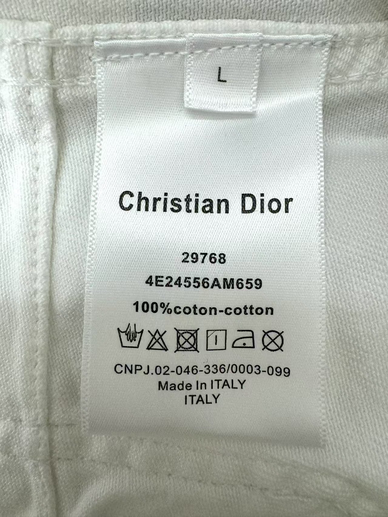 Customized 100% cotton slub denim fabric, CD Little Bee logo, snap buttons, front double pocket design, slim fit for a longer-looking leg, front pocket with printed letter logo design, custom leather tag detail at the back waist, custom hardware, a must-have for fall and winter. A set of matching pieces exudes elegance and sophistication.