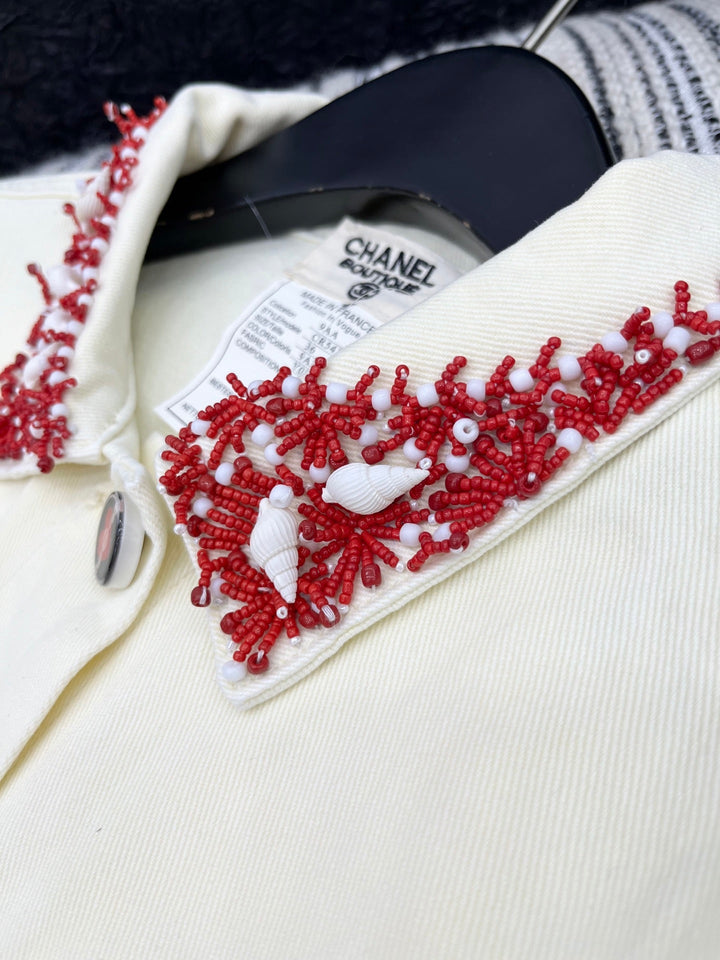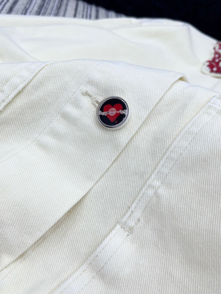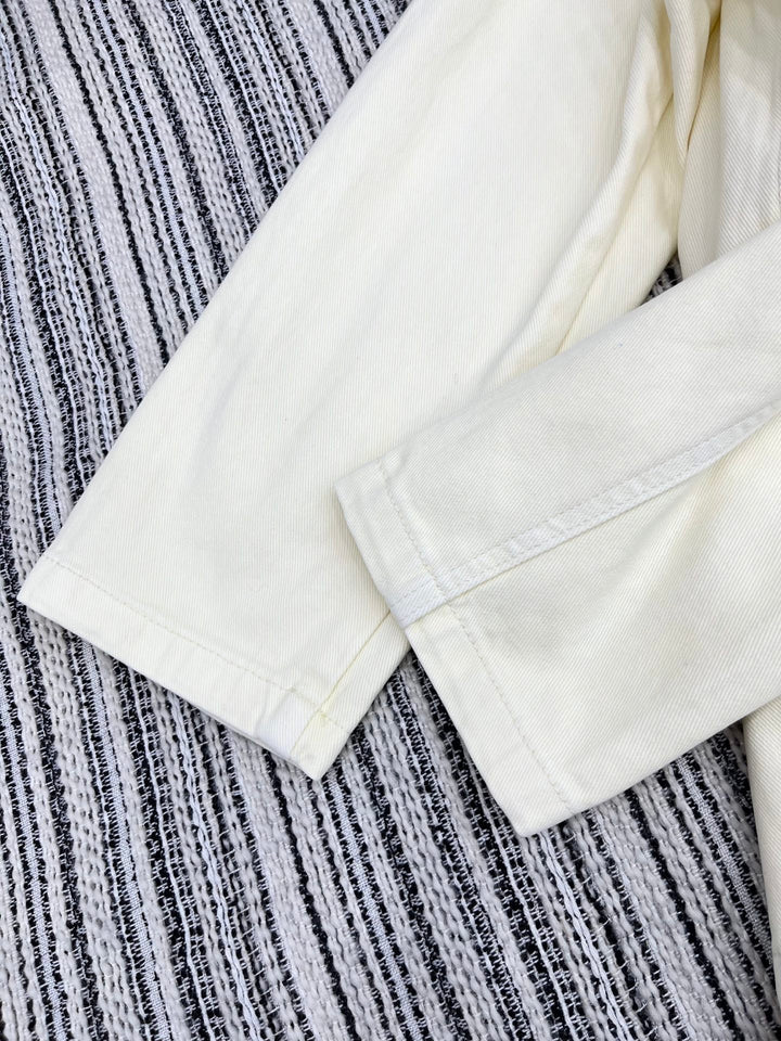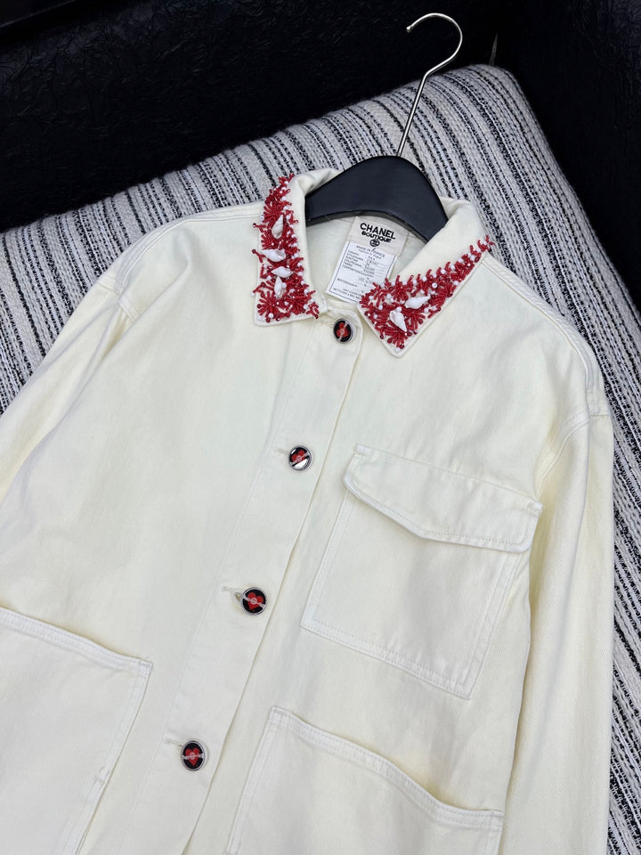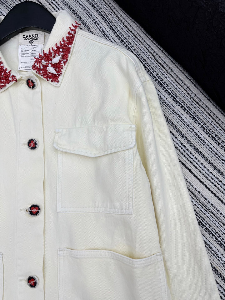 A classic lapel, hand-beaded denim jacket from the 25 vintage collection. High-quality, richly washed fabric creates a sturdy, comfortable, understated luxury that makes you look younger! A must-have for both young and beautiful women! A classic regular fit, highly recommended for your own collection! Quality workmanship is evident in the details.
