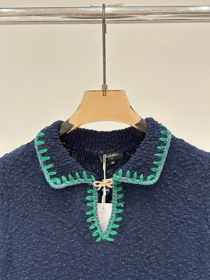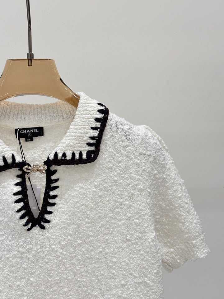 25 Early Autumn Collared Openwork Knit Short Sleeve