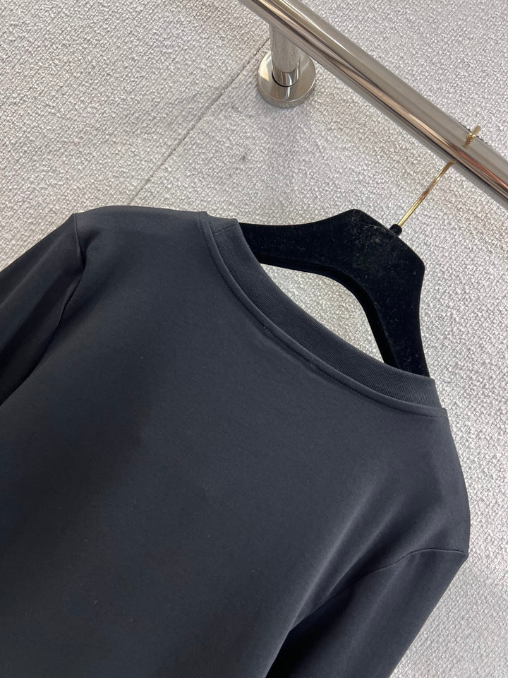 25 early autumn new style round neck long sleeves full of high-end feeling, high-quality fabrics, comfortable and skin-friendly, the version is slim but not tight, can well outline the body shape. It can be worn alone to show simple elegance, and can also be easily worn inside to add a sense of refinement to the overall shape. It is a practical item to create a variety of styles.