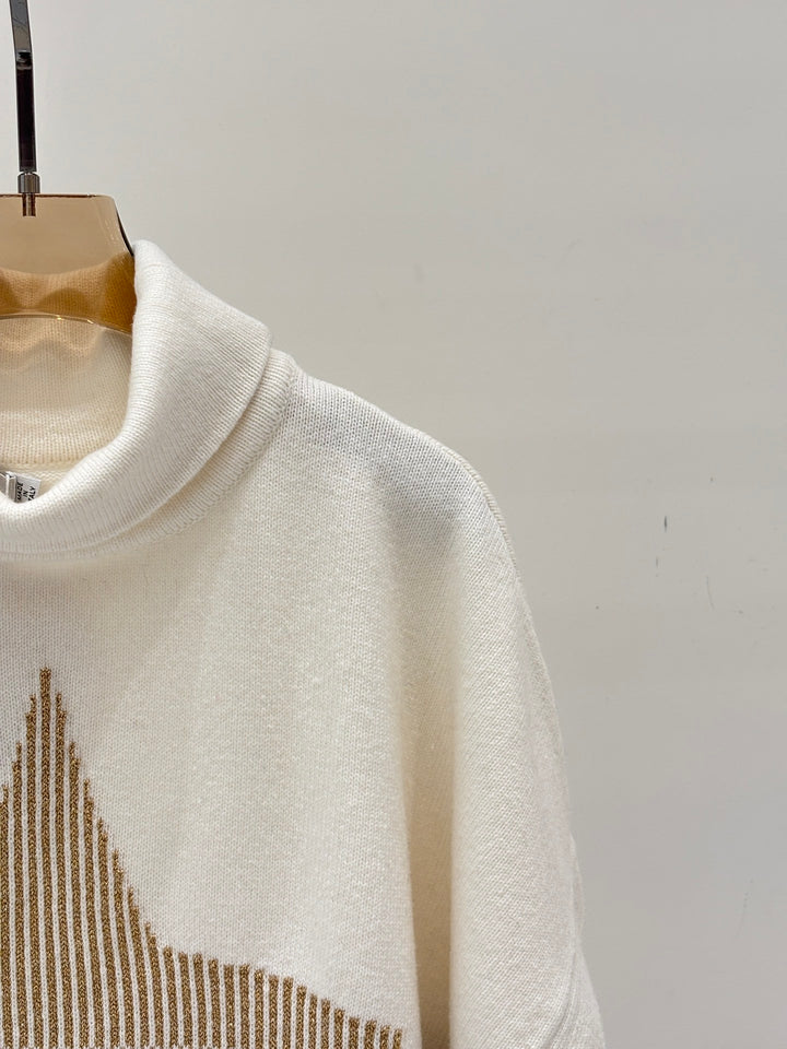 25 Early Autumn New High-Neck Five-Pointed Star Pattern Long-Sleeved Top