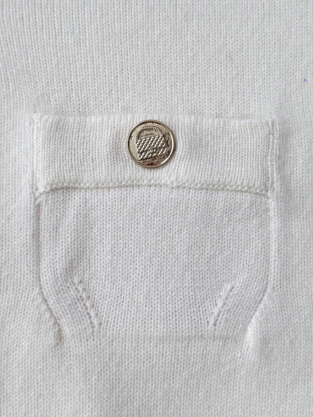 New arrival for Fall/Winter 25, a minimalist two-tone collared long knitted cardigan! A tribute to the classic Chanel four-pocket design, it exudes a youthful and playful girlish charm! Custom-dyed cashmere yarn is premium, comfortable, and soft! Round neckline, three-dimensional tailoring, fine crochet texture throughout, and contrasting color threaded edging throughout. A relaxed and elegant look. The rhinestone buckle and bow tie on the chest easily highlight the detailed texture. Double C metal buckles embellish the top edge of the pockets. Exquisite and stylish. Perfect for layering and mixing. It can be stylish or hot, and fashionable and casual.