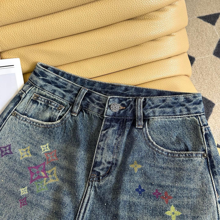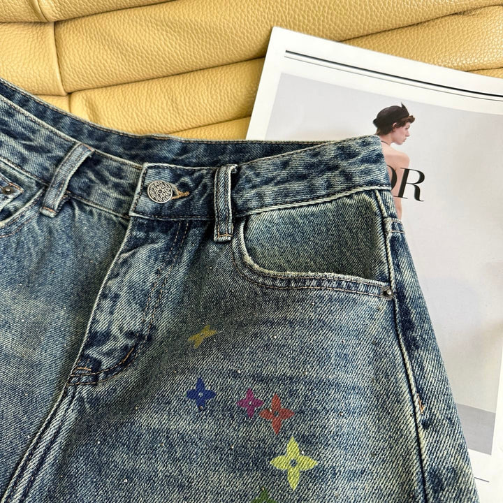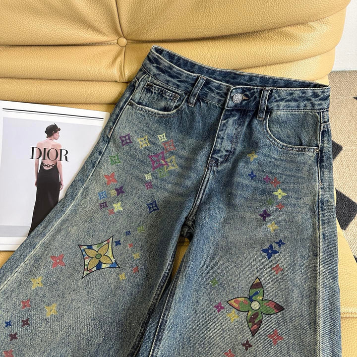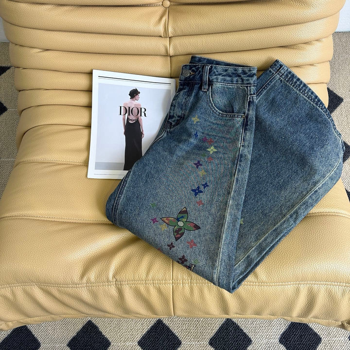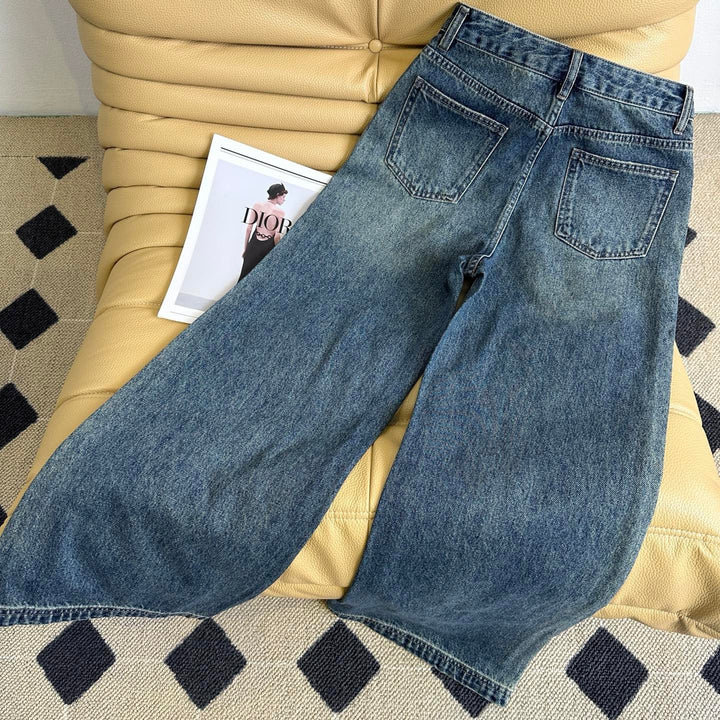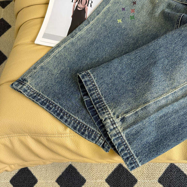New fall and winter jeans, straight-leg style is so comfortable to wear, instantly hides fat, the style is very good, the upper body modifies the waistline and leg shape, can be sweet or salty, super easy to match, retro distressed color is very good, fashionable must-have
