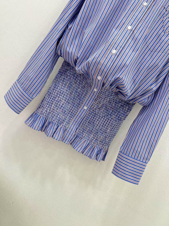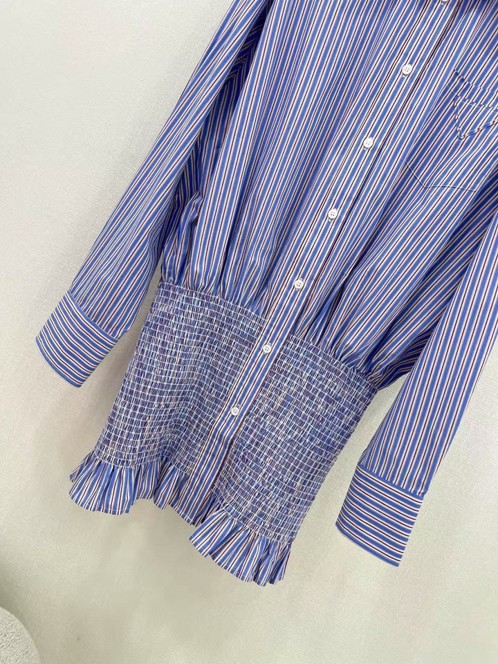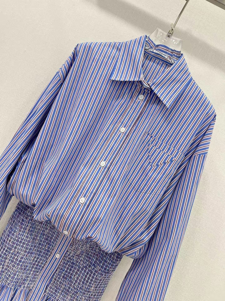 25 new styles of high-smart outfits! Hip-hugging design, high-end shirt dress! Customized color-woven striped cotton shirt fabric, a must-have for white, rich and beautiful women! Temperamental small lapel, dropped shoulders, loose version, versatile and suitable for everyone! A fashionable and cool outfit! Low-key luxury design! Highly recommended to keep it for yourself! Imported cotton shirt fabric is not easy to wrinkle and has a great texture!