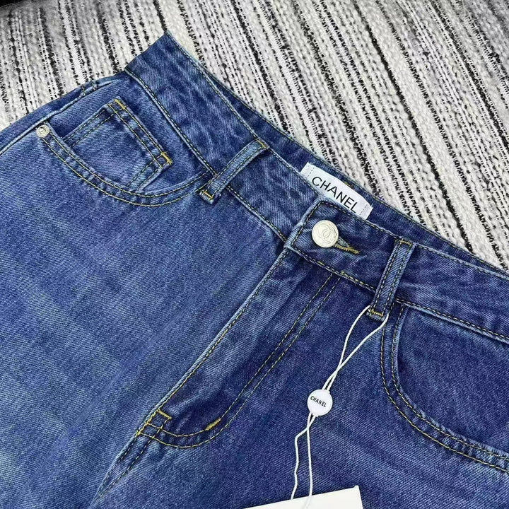 25 Early Spring Logo Print Sequined Denim Straight Leg Pants
