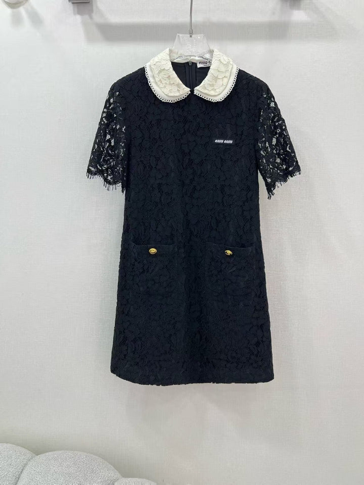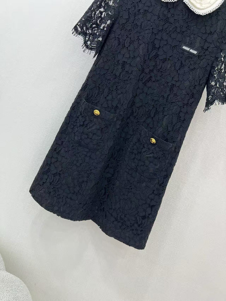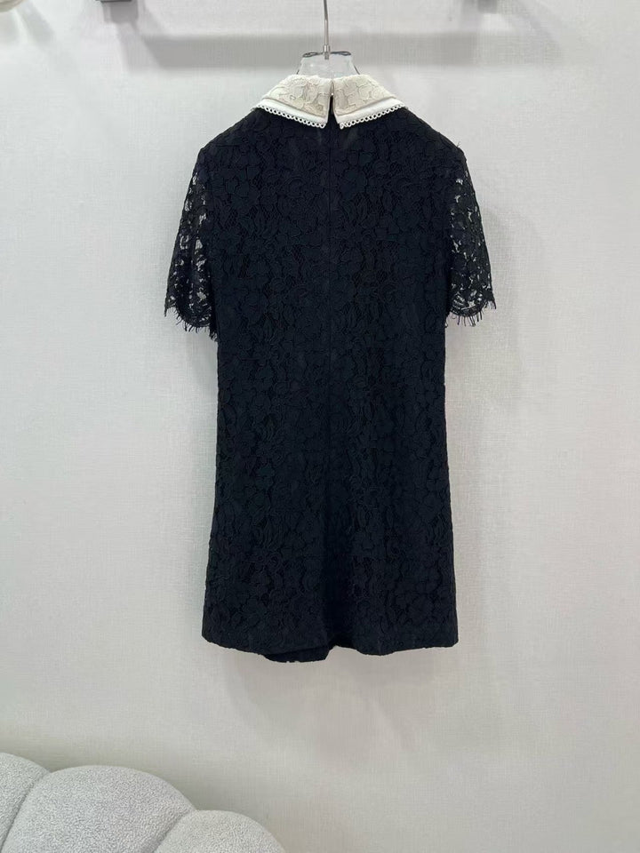 25 new most French romantic water-soluble flower lace dress 🤍Black and white contrast double collar design Classic letter logo on the chest Super beautiful and sexy Exclusively dyed lace water-soluble fabric With French romance Full of atmosphere White, rich and beautiful low-key temperament High appearance With fairy feeling