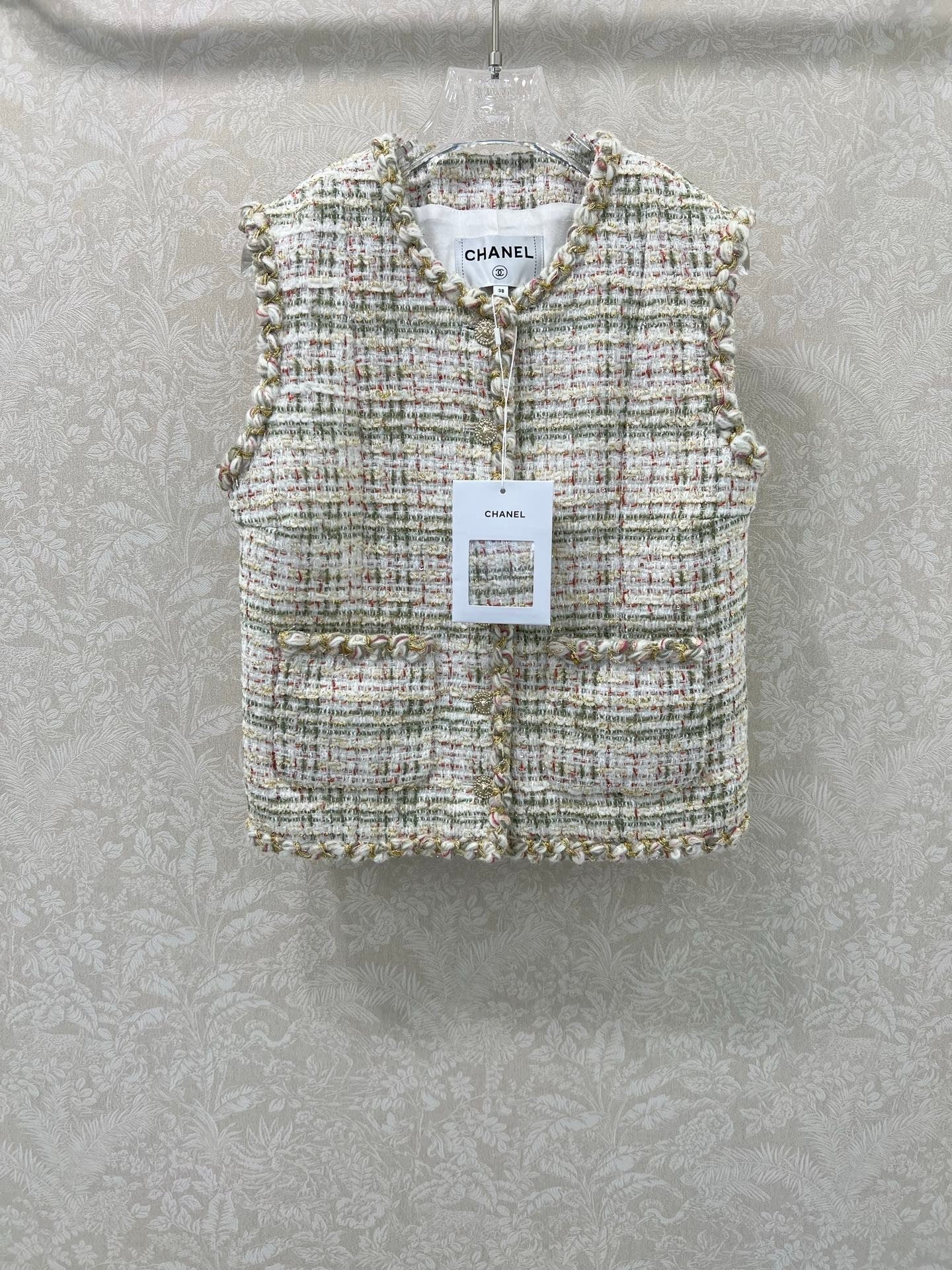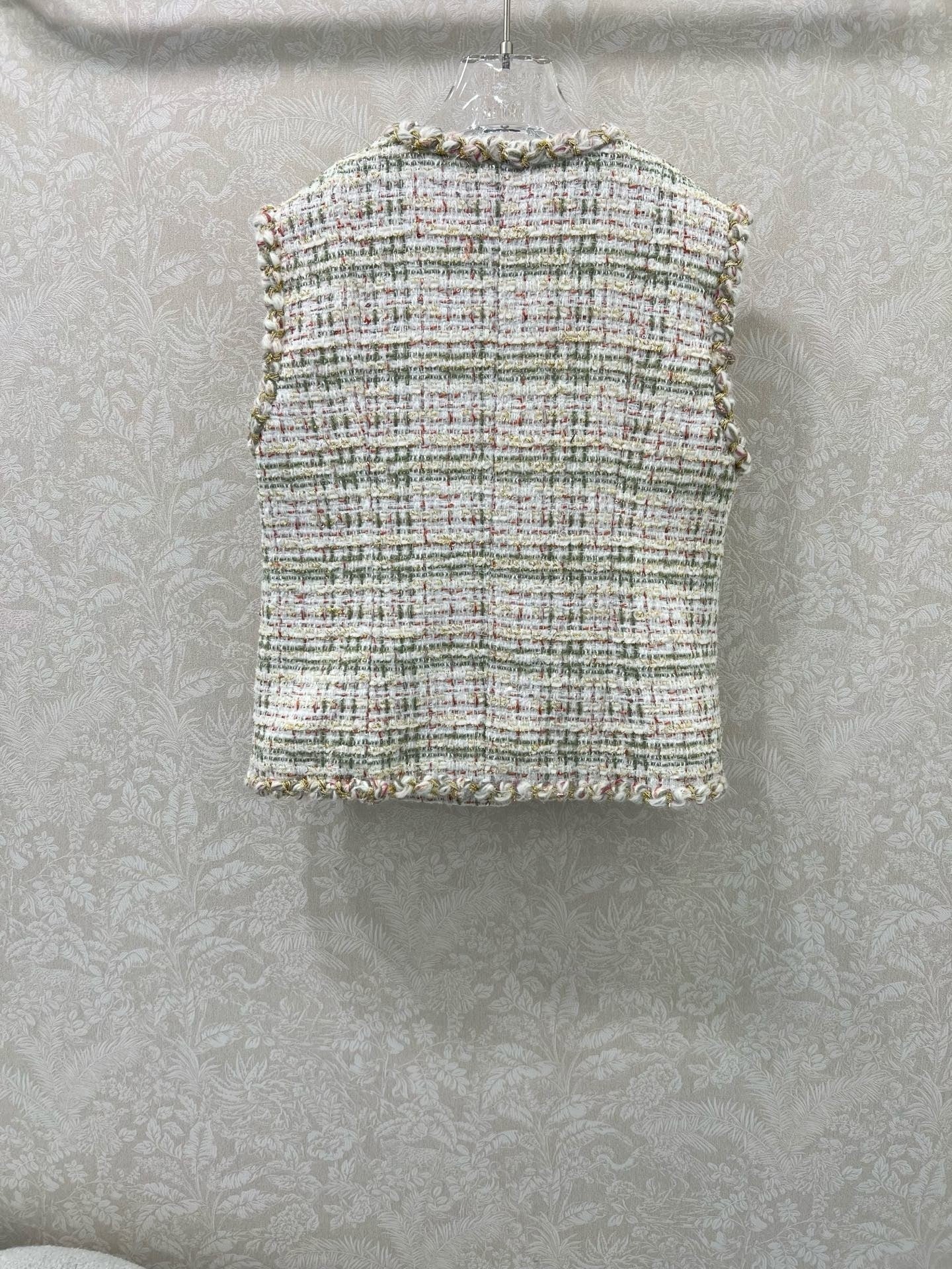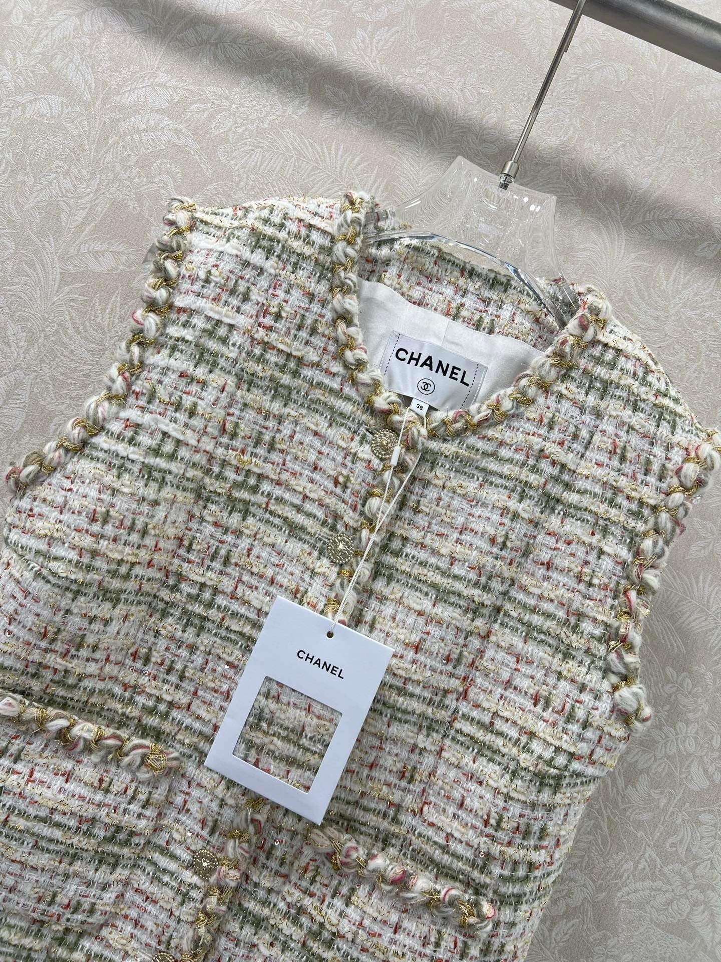 Silk lining, hand-picked edges, custom-made imported woolen material, obvious texture, visible to the naked eye, high-quality texture, coarse floral striped woolen fabric creates a model of celebrity style, single row of printed round buttons on the front, exquisite yellow-green woven texture, fresh and refined, luxurious and elegant, multiple gold wire binding decorations on the cuffs and front, elegant and charming, rich design layering, the first choice for fashionable wear