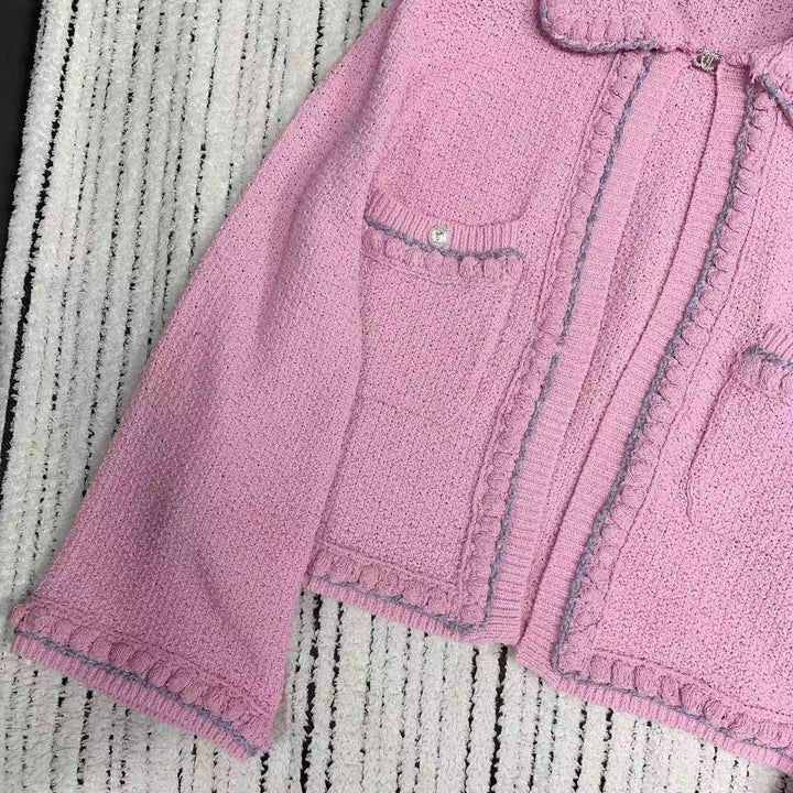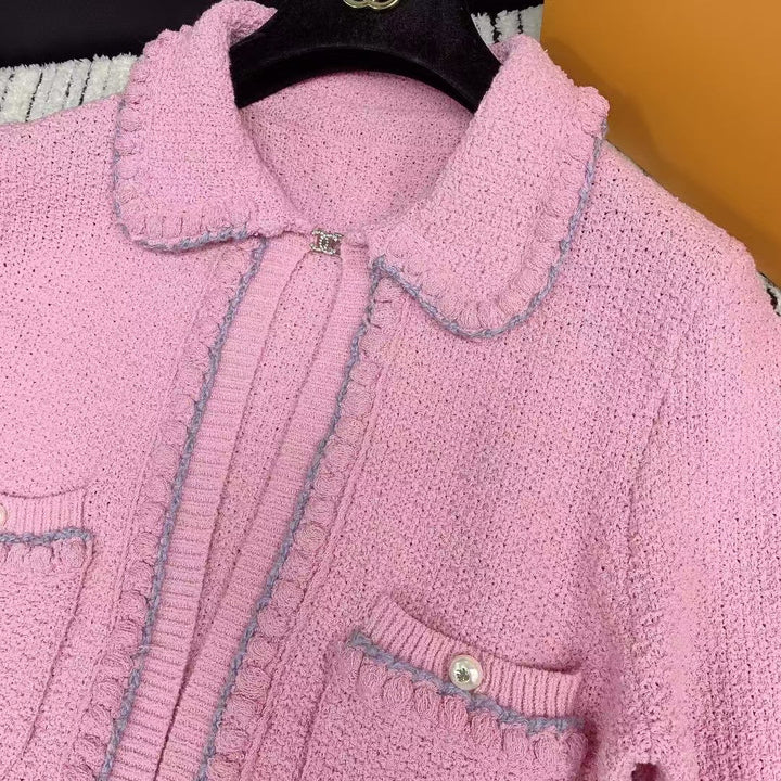 25 spring and summer lapel pocket knitted sweater cardigan