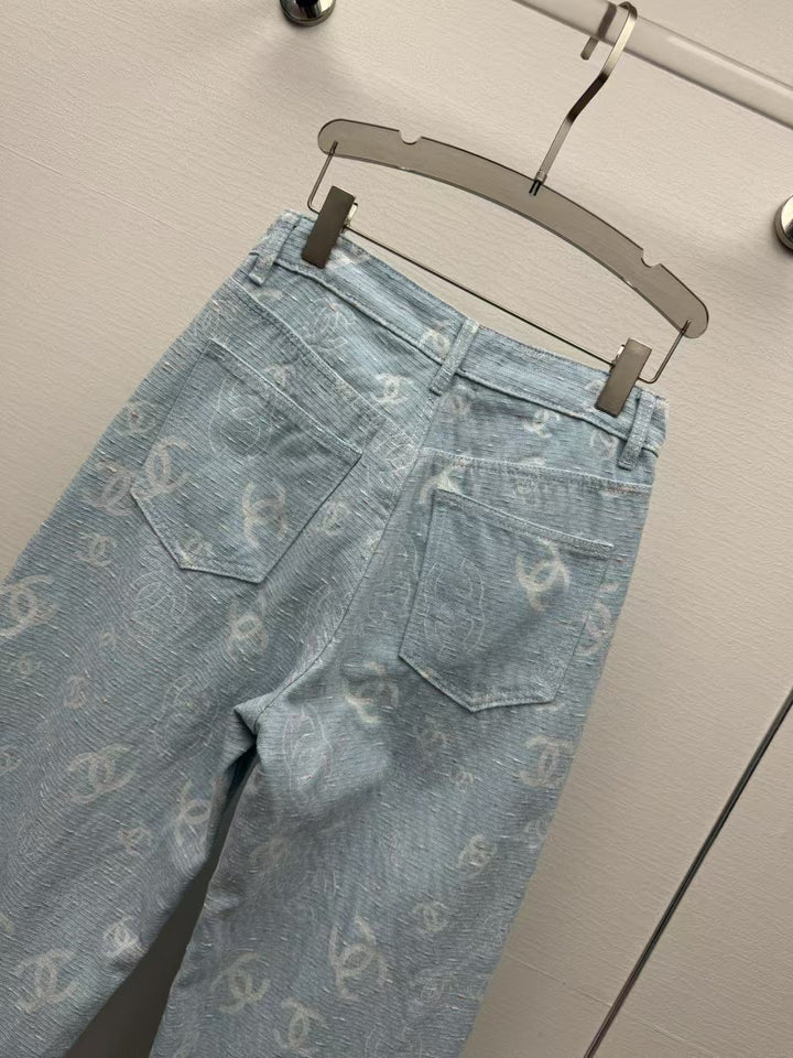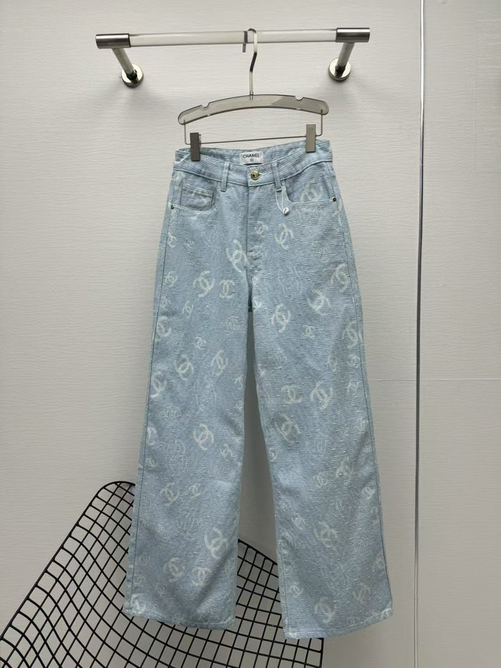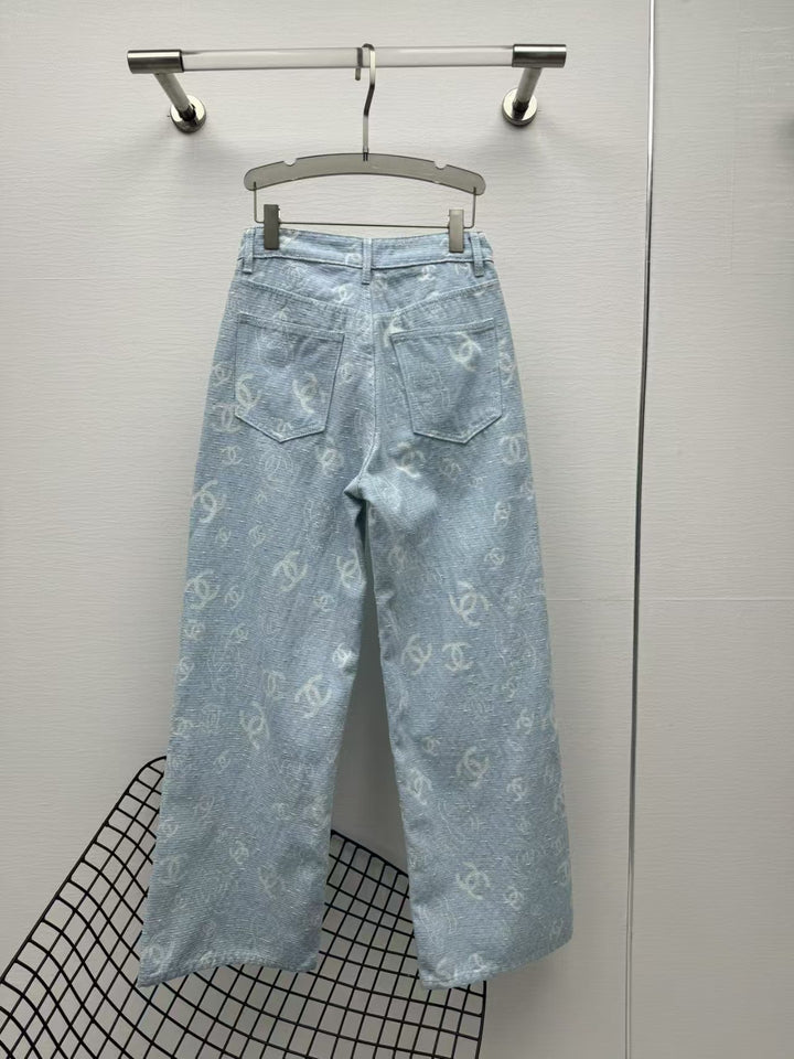 25ss early spring new style light-colored jacquard all-over printed straight jeans丨High version produced! Made of imported pure cotton presbyopia gold silk fabric, the texture is soft and comfortable. The light color is very suitable for spring and summer~ It is a super noble style. The straight version is visually slimmer and can be worn casually with a light luxury feel.