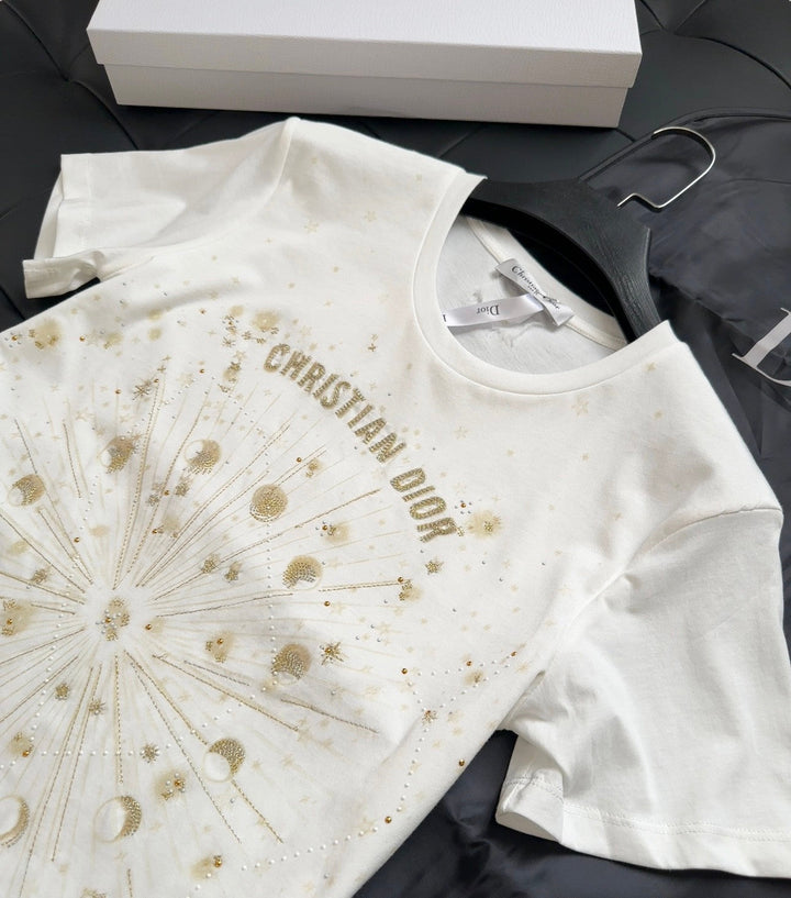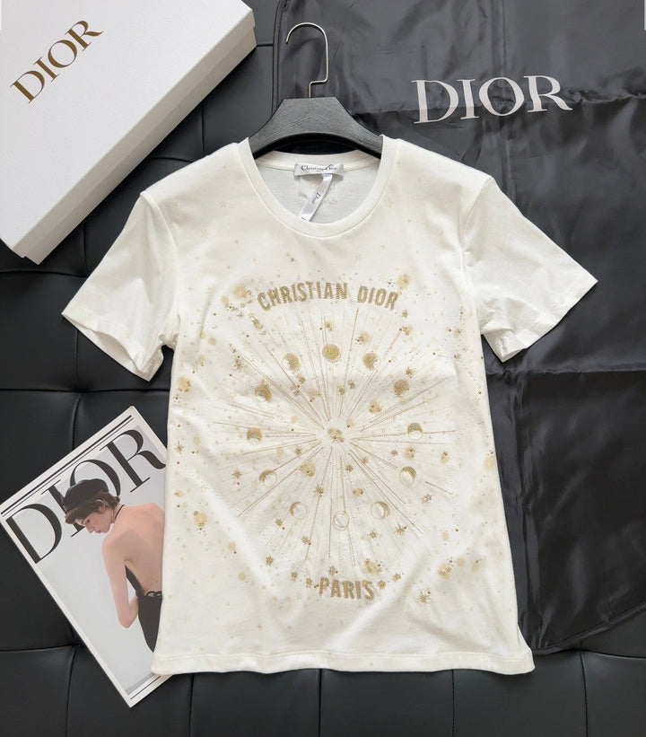 This T-shirt is inspired by the elegant Dior aesthetic and offers a refined interpretation of casual style, showcasing haute couture flair and elegance.