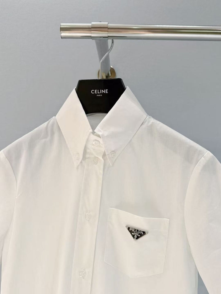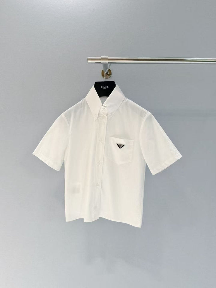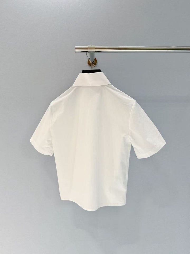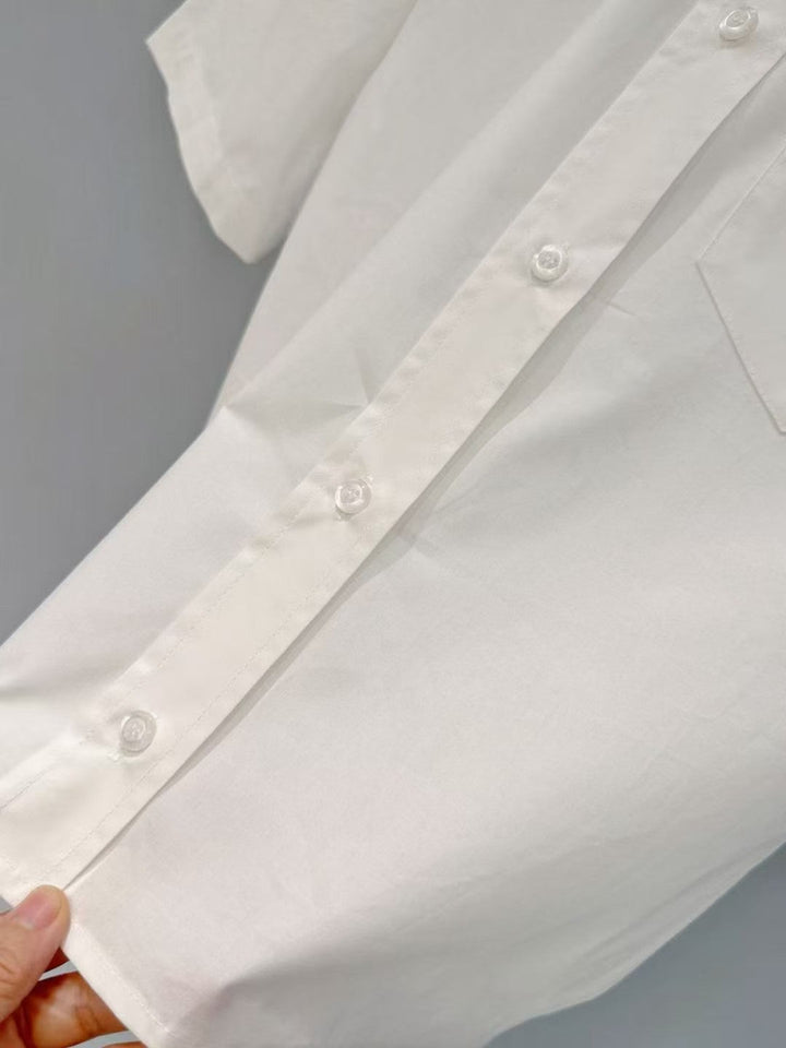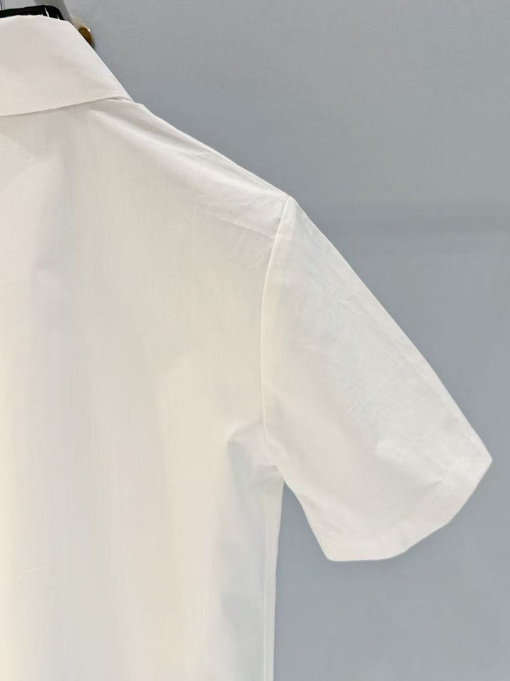 High-density 80-count poplin cotton, button-down collar, short sleeves, simple pockets, triangular logo adds a finishing touch, full of literary atmosphere, easily captures the coolness of intellectuals, youthful and energetic, overall straight fit, slimming visual effect when worn.