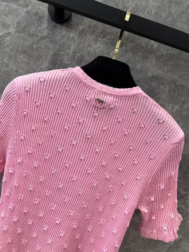 25ss early spring new classic three-dimensional polka dot crochet knitted short-sleeved top丨A must-have for fair-skinned and rich girls! Versatile and slim fit, super slim! Original custom hardware, seersucker weaving method, imported high-count yarn, super comfortable texture! Retro temperament, fashionable and advanced! The style makes you look slim! Elegant and advanced for celebrities!