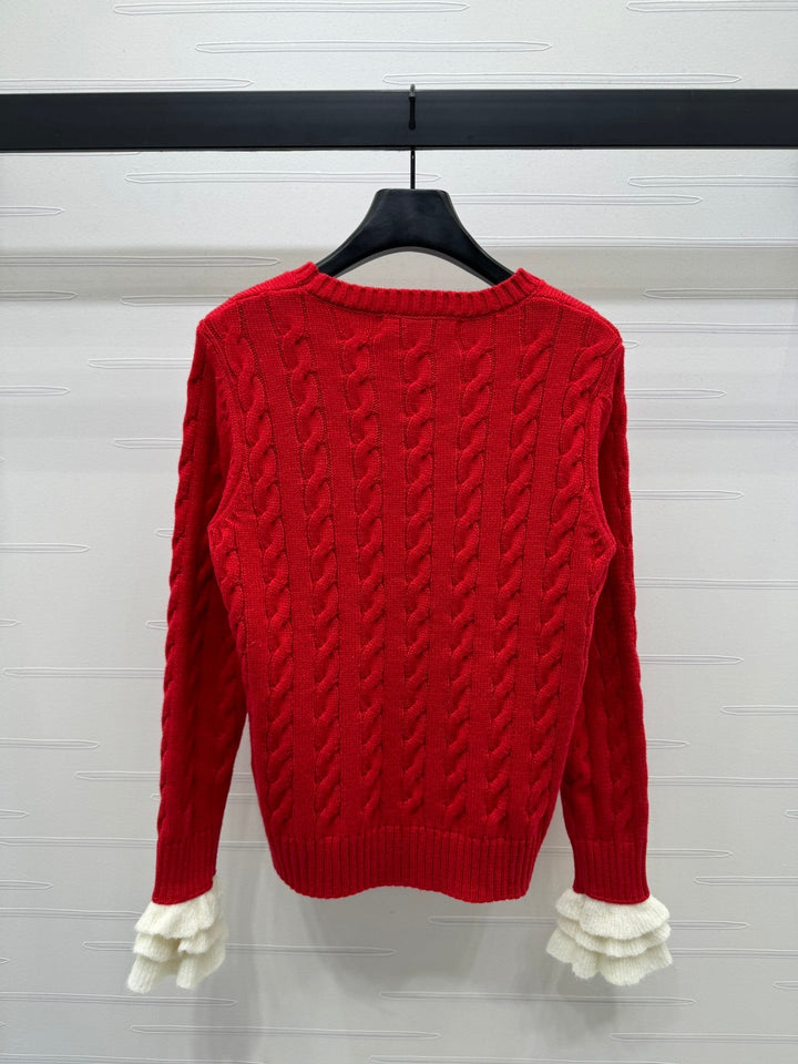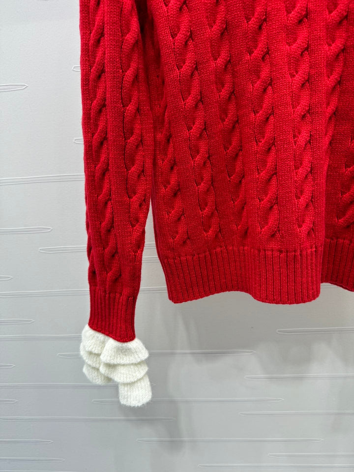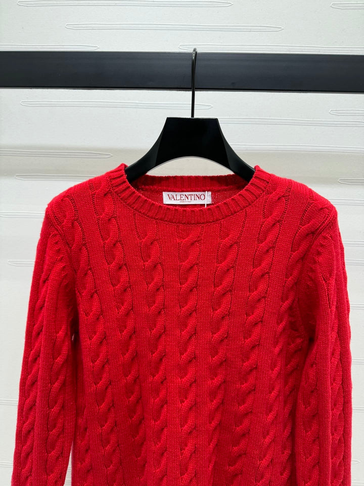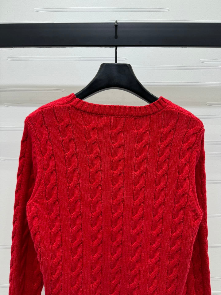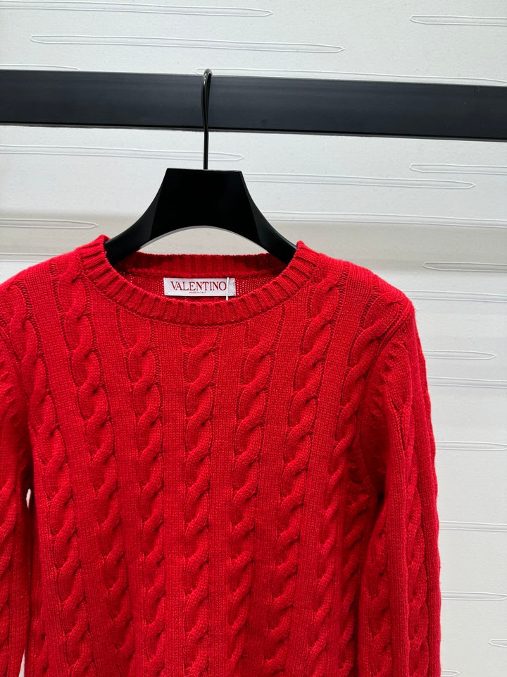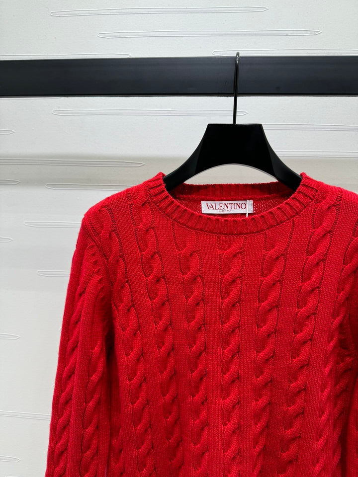 Cable knit pullover sweater, cashmere knit material, high-quality texture, comfortable and soft, with obvious texture. Round neck, straight shoulder, long sleeve sweater style, with vertical cable texture, highlighting the intellectual and gentle temperament. The edges are tightened with threaded vertical pits, full of elasticity, and letter logo decoration highlights the high-end tone. The regular version is not picky about body shape or age. It is a simple and versatile style for daily use in autumn and winter!