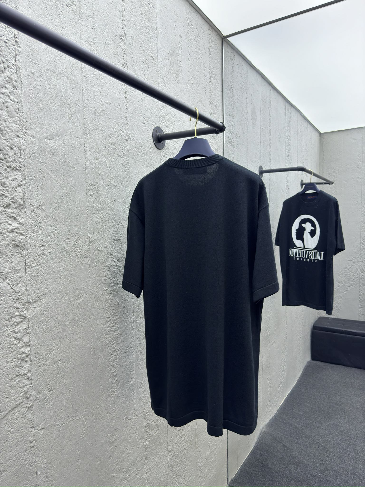 The black and white portrait short sleeves are made of 100% fully combed cotton yarn. From a technical point of view, combed cotton will clean out excess impurities during the production process, making the woven items look smoother and high-end; corresponding to pure cotton Generally speaking, combed cotton is not prone to fluffing and pilling; it is knitted using a Stoll 14-needle ultra-fine machine imported from Germany worth 47W. It is knitted at a parallel and even speed with reference to the original single-sided partial mesh bottom hanging wool structure. Each piece consumes It takes 270 minutes. During the weaving, 16 sand spits are used to alternately knit back and forth. The number of knitting rows on a single front garment is as high as 6352. There are so many knots in the newly woven garments that it requires pure manual thread picking and knotting inspection. , seam picking and washing can only be carried out after random inspection.