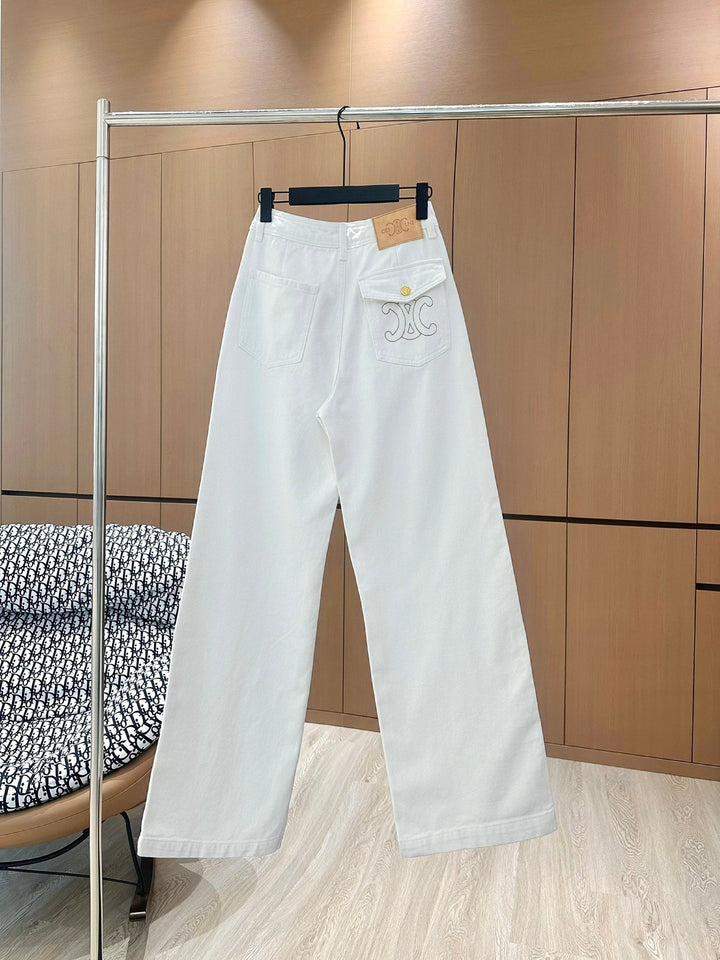 Winter heavy button decoration embroidery high waist wide leg jeans