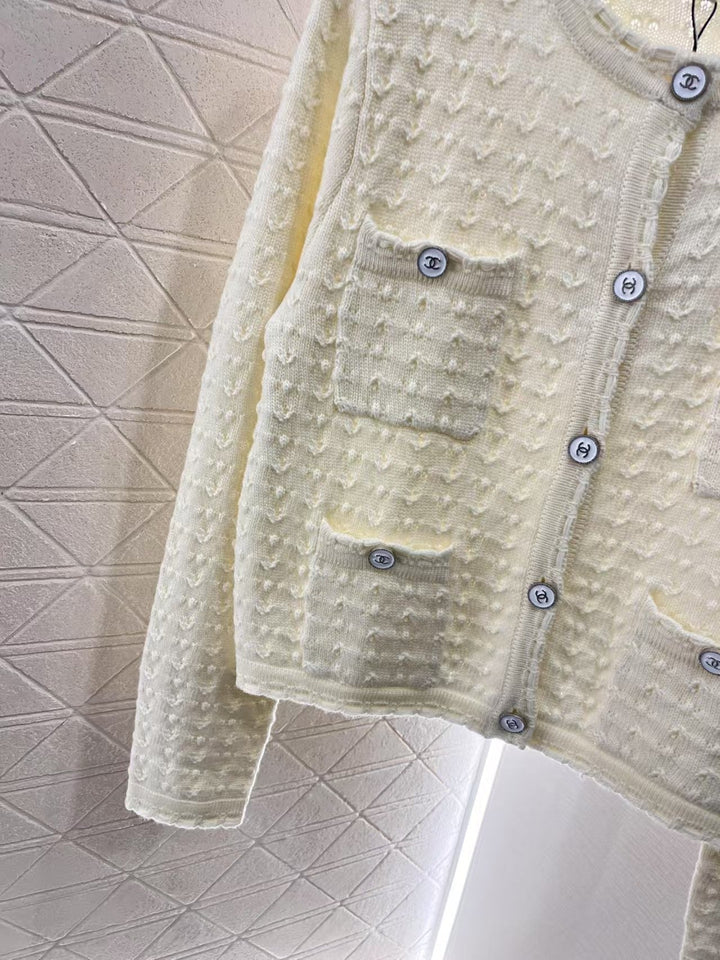 High-quality texture, comfortable and soft. Round neck knitted cardigan cut. Cable knitted heavy crocheted texture all over the body + buttons and multiple pockets. Rich and gorgeous layers. Eye-catching. Easily highlights the brand details and texture. More fashionable and versatile. Short version modifies the proportion. Fashionable and casual.