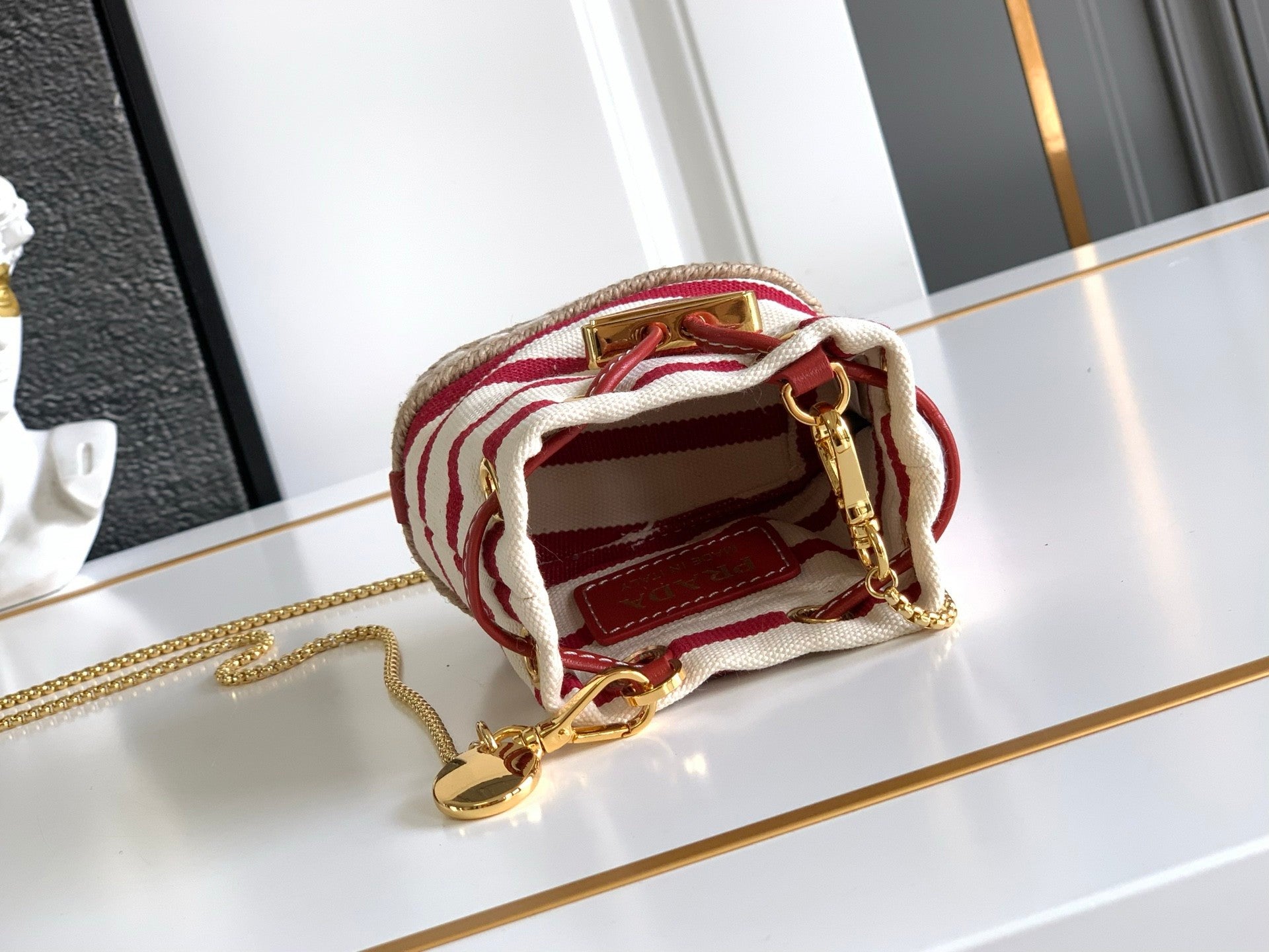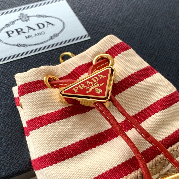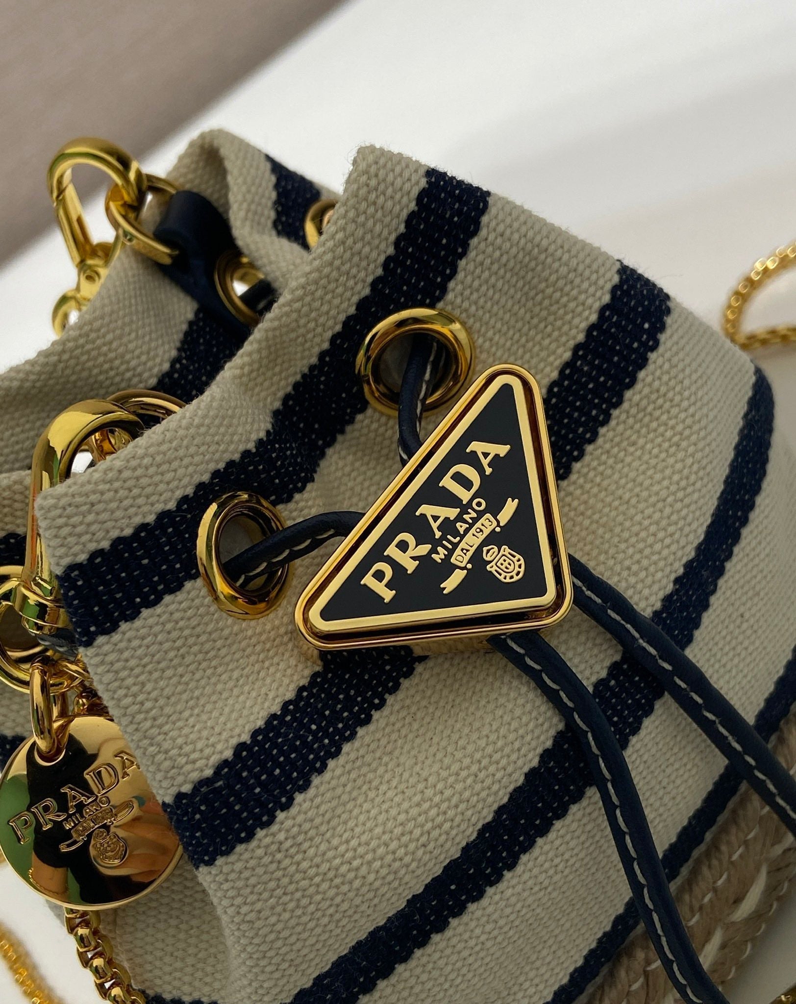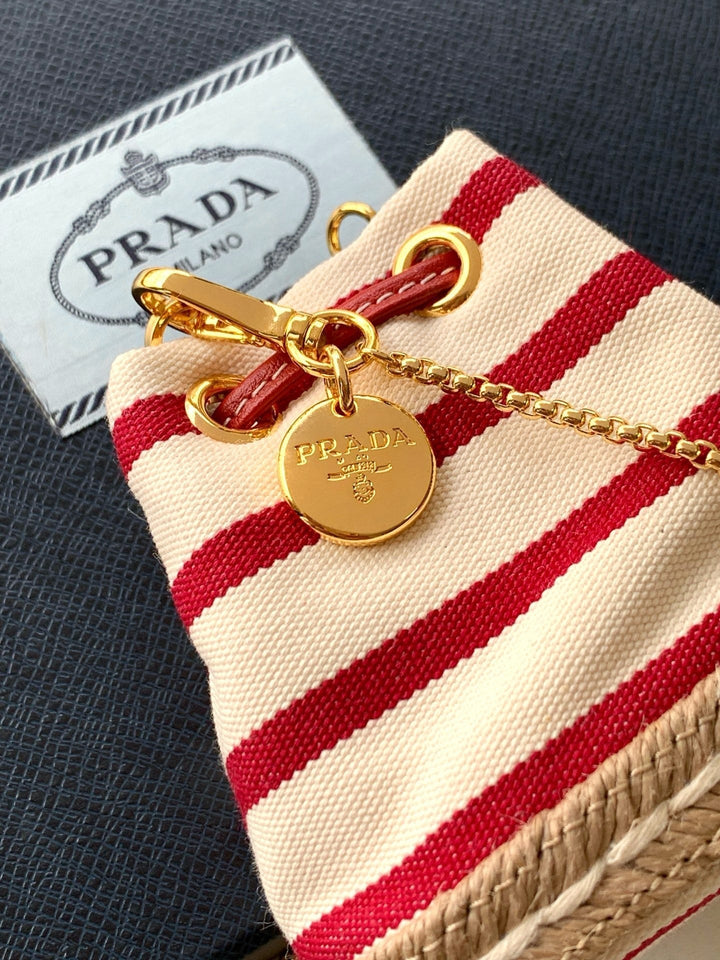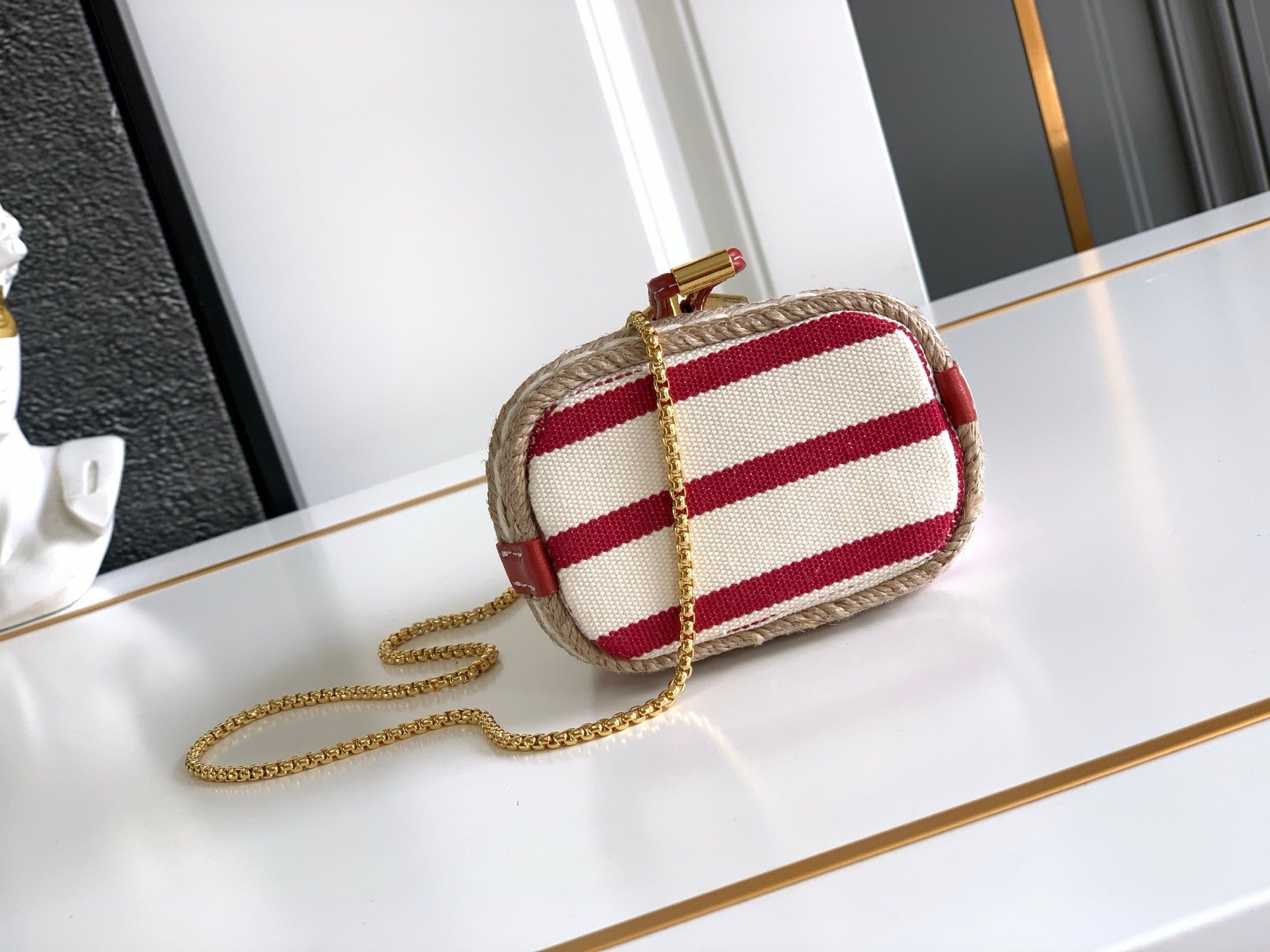 🎉🎉This mini bag reinterprets classic nautical elements, presenting an elegant summer feel and exquisite details. Made from striped fabric, the bottom design is inspired by straw shoes, paired with leather drawstrings and a delicate removable shoulder strap. So cute! 😘 It’s both ethereal and edgy—how could you not be tempted? 😘😘 A summer must-have—beautiful ladies, hurry and get yours! Another timeless bestseller! 🎉🎉 Â