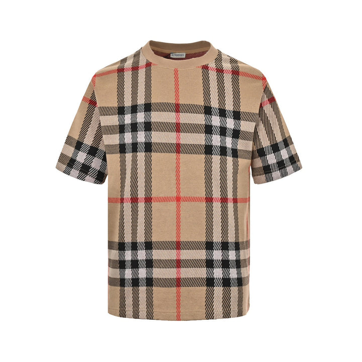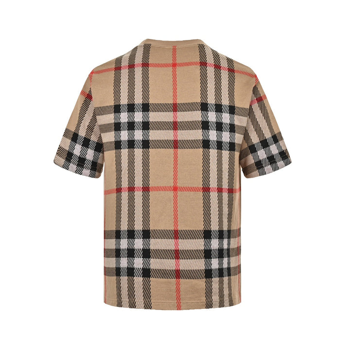 Checked knitted short sleeves