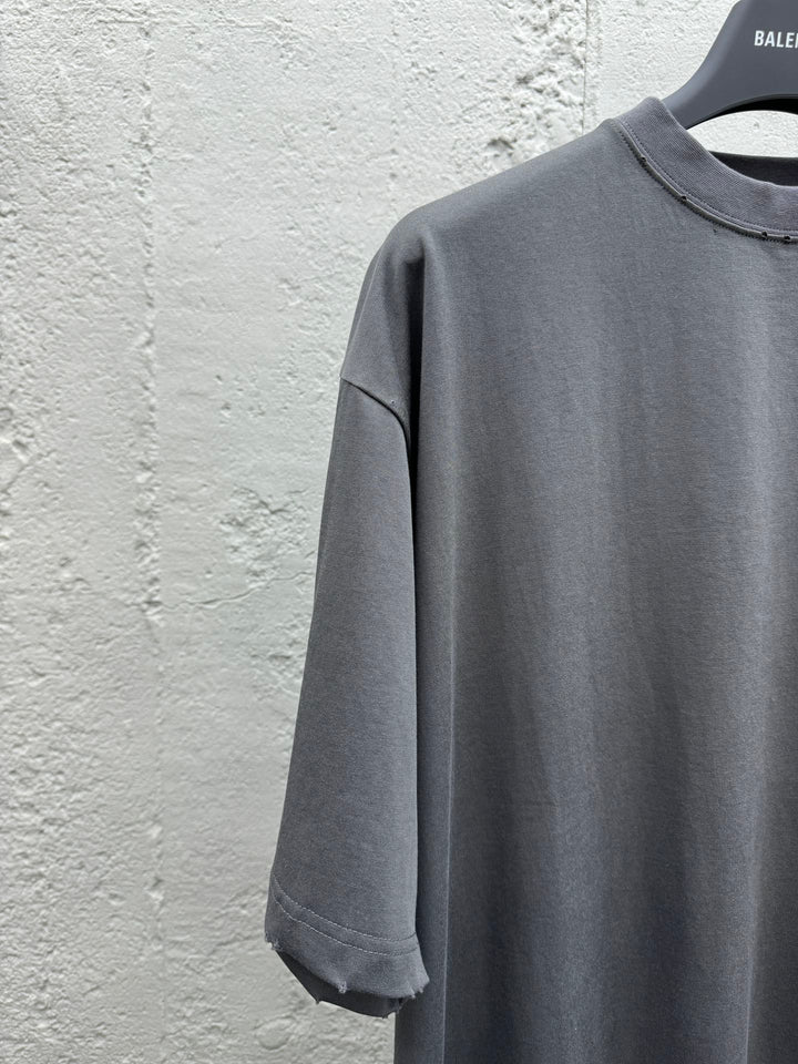 Frayed neckline. Ribbed fabric. Custom-woven and dyed. The color is the same. No color difference. Custom-woven and dyed.100% cotton fabric. The sleeves and hem are frayed.letter logo