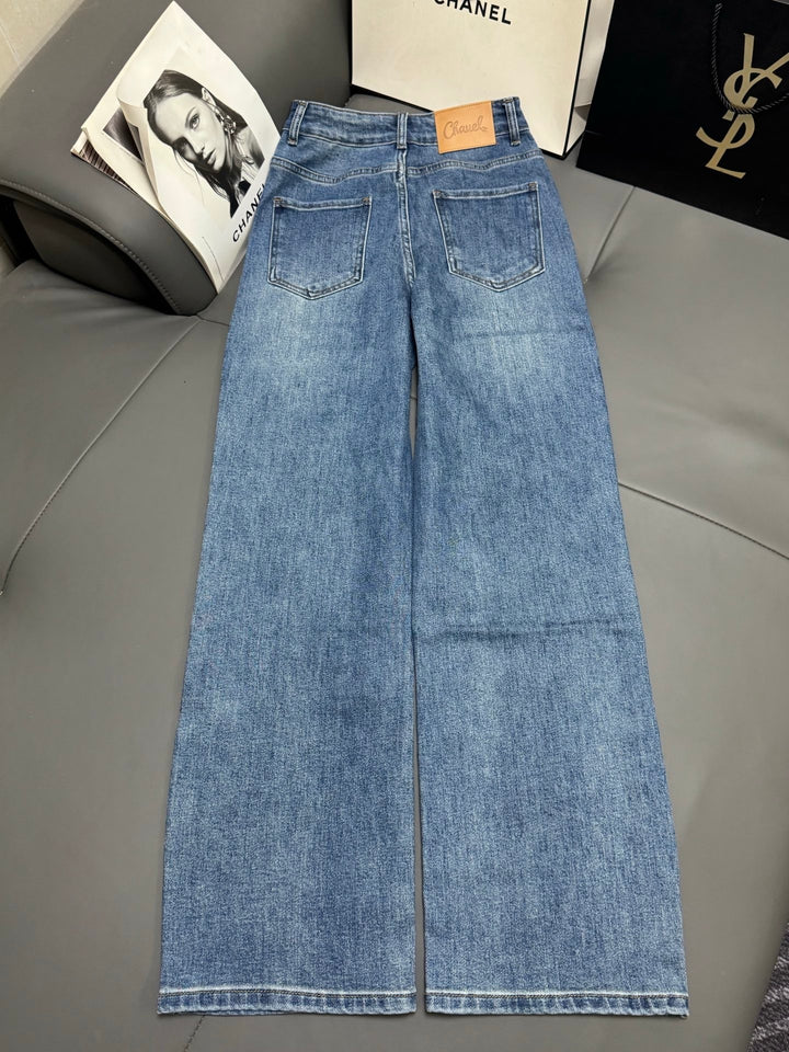 25 New straight jeans for early autumn, elastic design, sky blue washed color. This model is elastic, the soft denim fabric is comfortable and the upper body is soft, making the upper body look slim and the legs look longer, making anyone who wears it look slim.