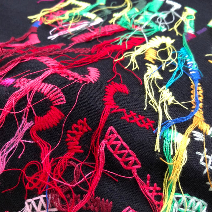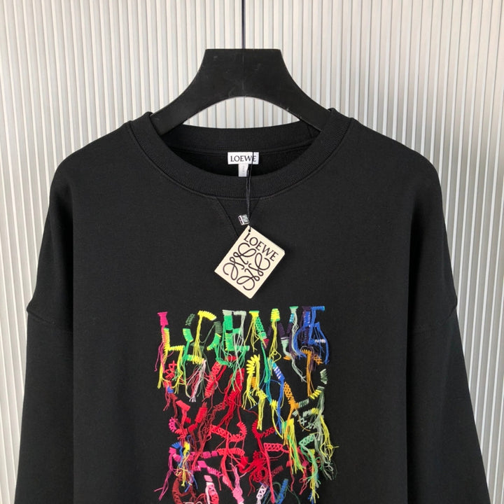 Colorful fringed cotton pullover sweatshirt