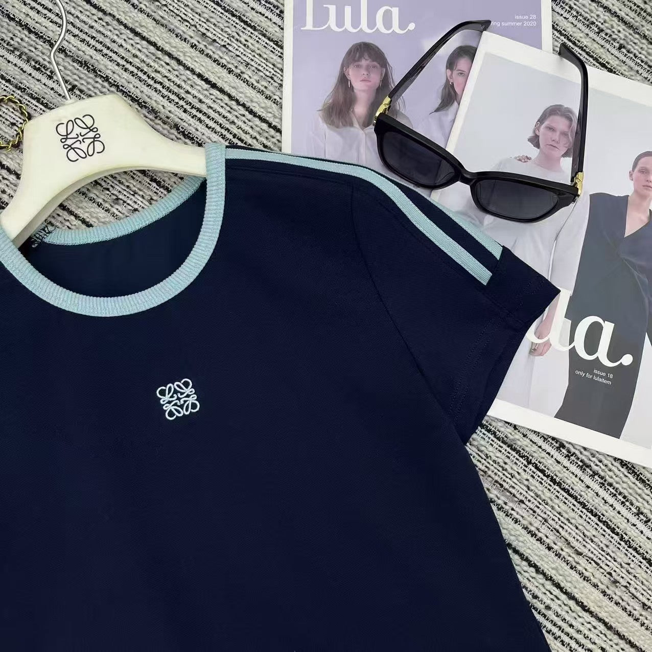 Contrast color short-sleeved elastic waist wide-leg pants suit
