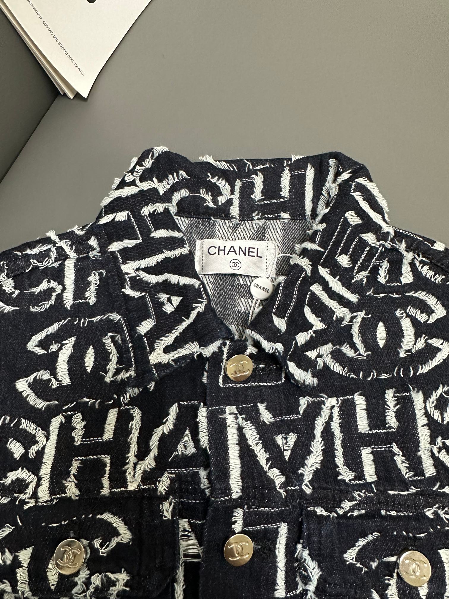 Denim jacket with full-print letters