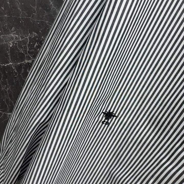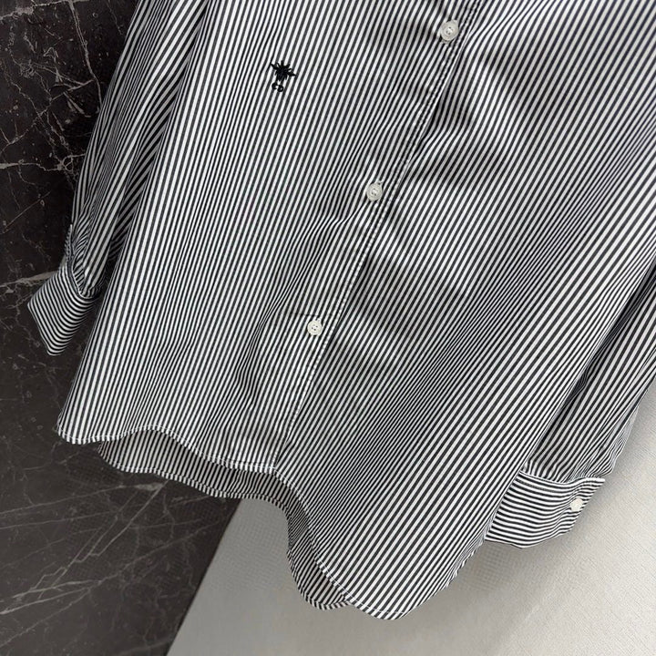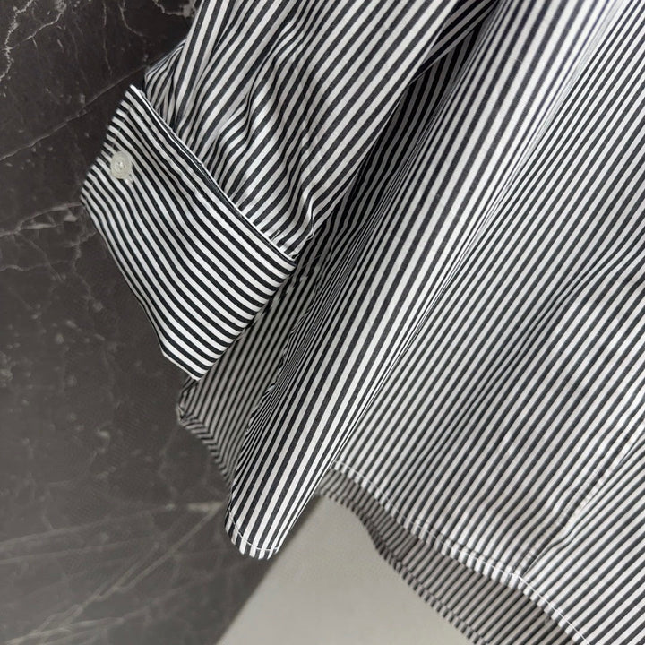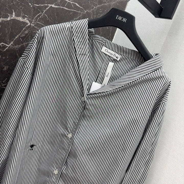 New arrivals in spring and summer. Irregular slanted shoulder long-sleeved shirts with small exposed shoulders. Freely shape various styles. Loose-fitting three-dimensional tailoring. The upper body is casual and elegant. Striped elements are simple, fashionable and comfortable. Imported pure cotton fabrics are casual, energetic, fashionable and not fussy at all. Must-have versatile items this season