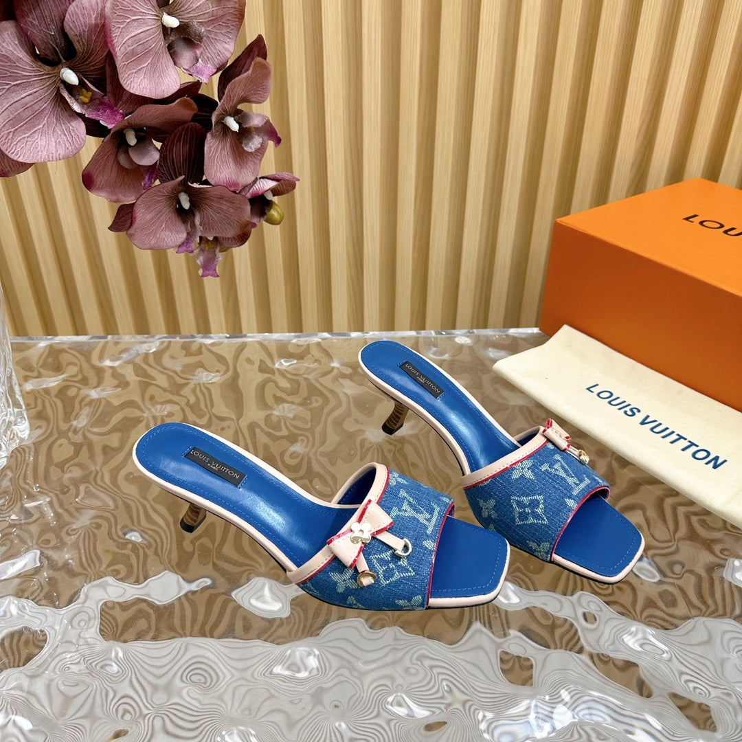 Medieval Vintage retro literature and art velvet bow🎀cat heel sandals
