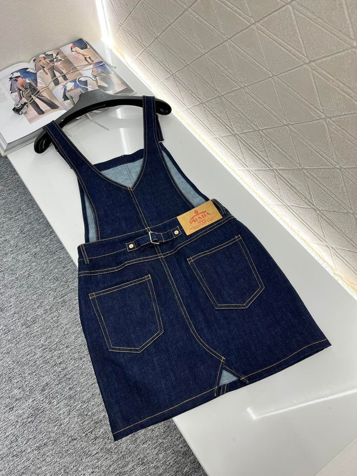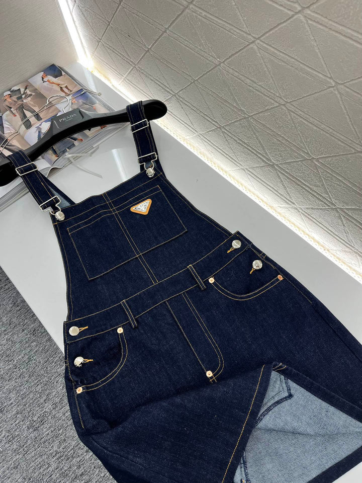 Navy blue denim suspender skirt