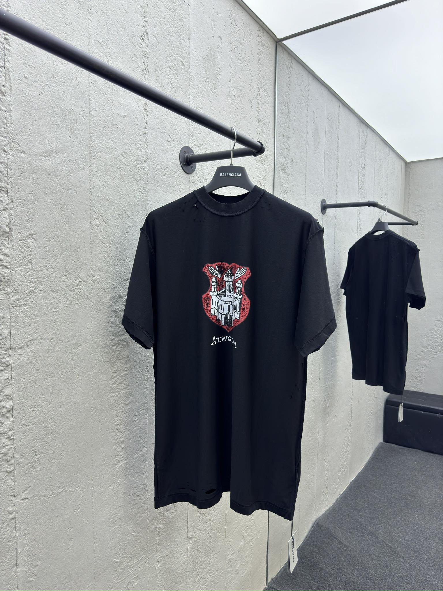 Distressed hole-in-the-wall castle t-shirt short sleeve