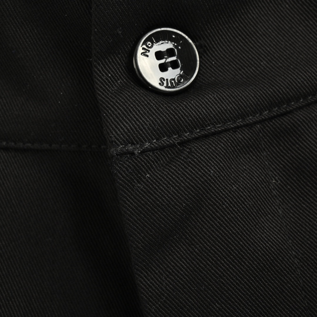 Twill woven fabric, Monogram flocked logo on the front pockets, Staples tabs on the back with motto square studs, white cotton twill lining with gum paste printed logo and the same process on the pocket fabric. The size, spacing and rows of flowers of the classic old-fashioned pattern on the fabric have been created by hand. Polyester fibre fleece is used to create the final flocked paper figure on a special paper containing a heat sublimation component.
