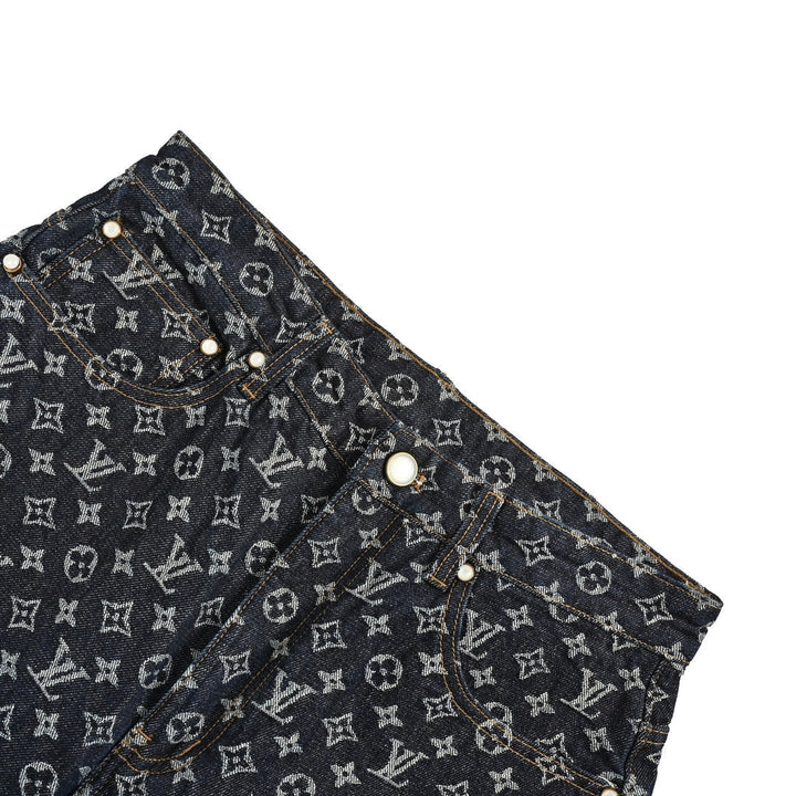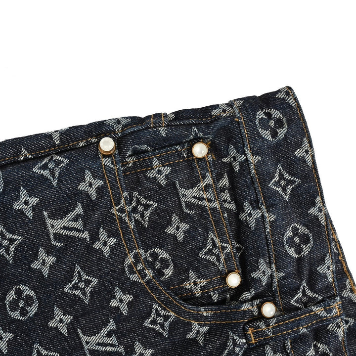 24Fw Heavy duty full print jacquard pearl button straight leg jeans