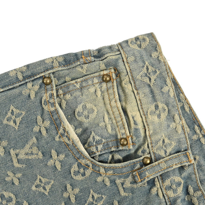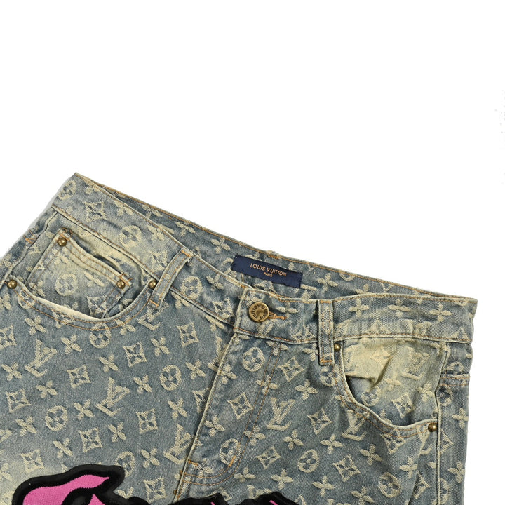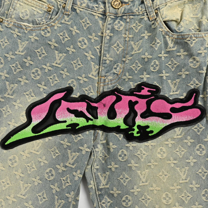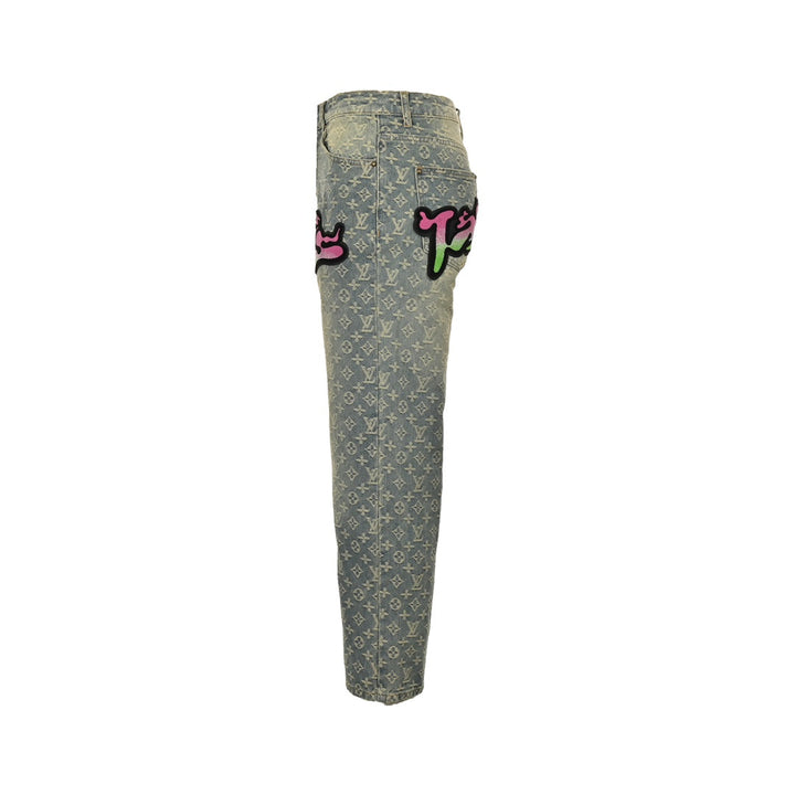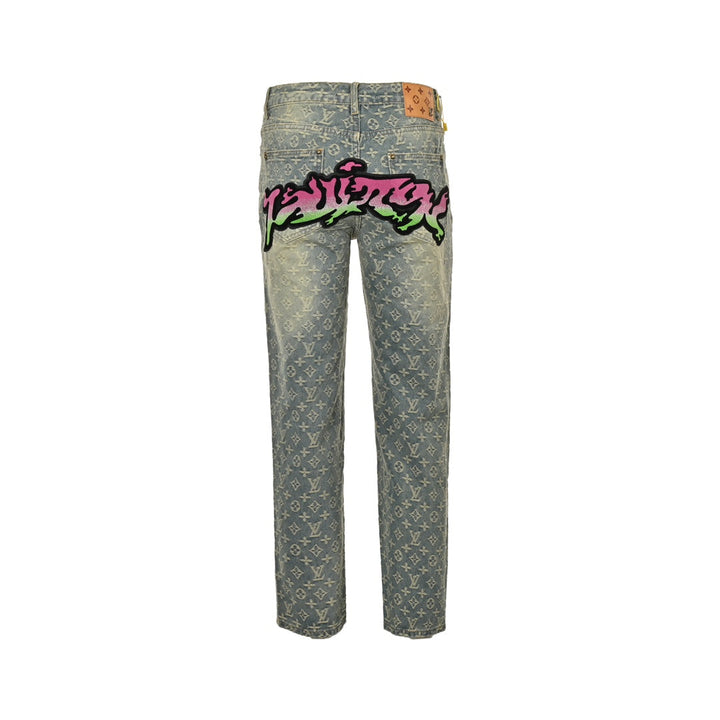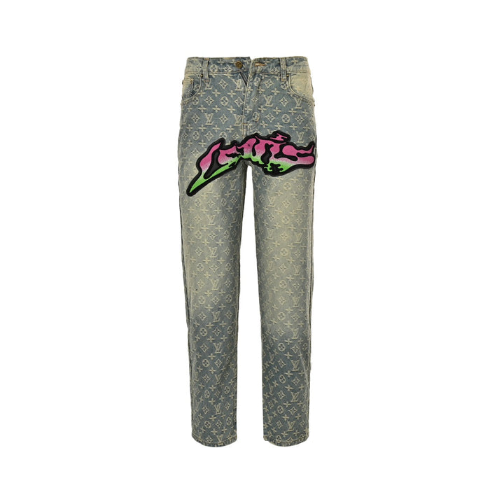 Gradient Flocked Alphabet Aged Jeans