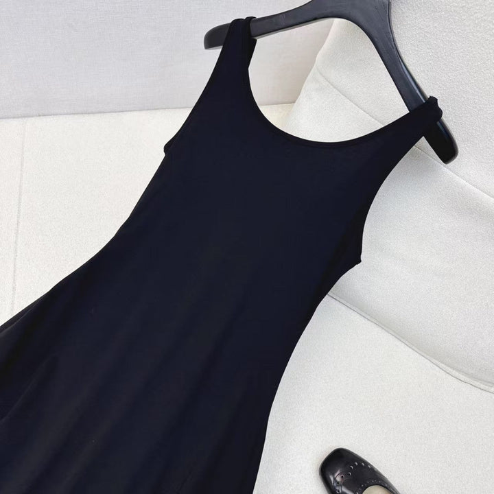 Minimalist U-neck suspenders, embroidered logo on the waist, pockets on both sides, slimming and elegant, full of high-end aura, high waistline design makes the waistline look more three-dimensional and slimming, suitable for daily leisure or formal occasions, perfect for exquisite women ~ covering up the flesh and making you look thin