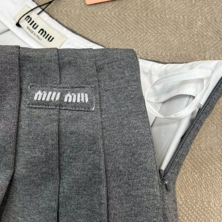 25ss early spring new style fake two-piece pleated skirt wool knitted composite poplin cotton skirt. The craftsmanship is special. The wool yarn pieces are glued and positioned to press the pleats. It is basically completed with manual assistance. The effect is amazing. It looks like a three-dimensional pannier. It has a sense of shape and air. The slightly expanded skirt is really good. It is a smart short skirt for girls. It is invincible and versatile.