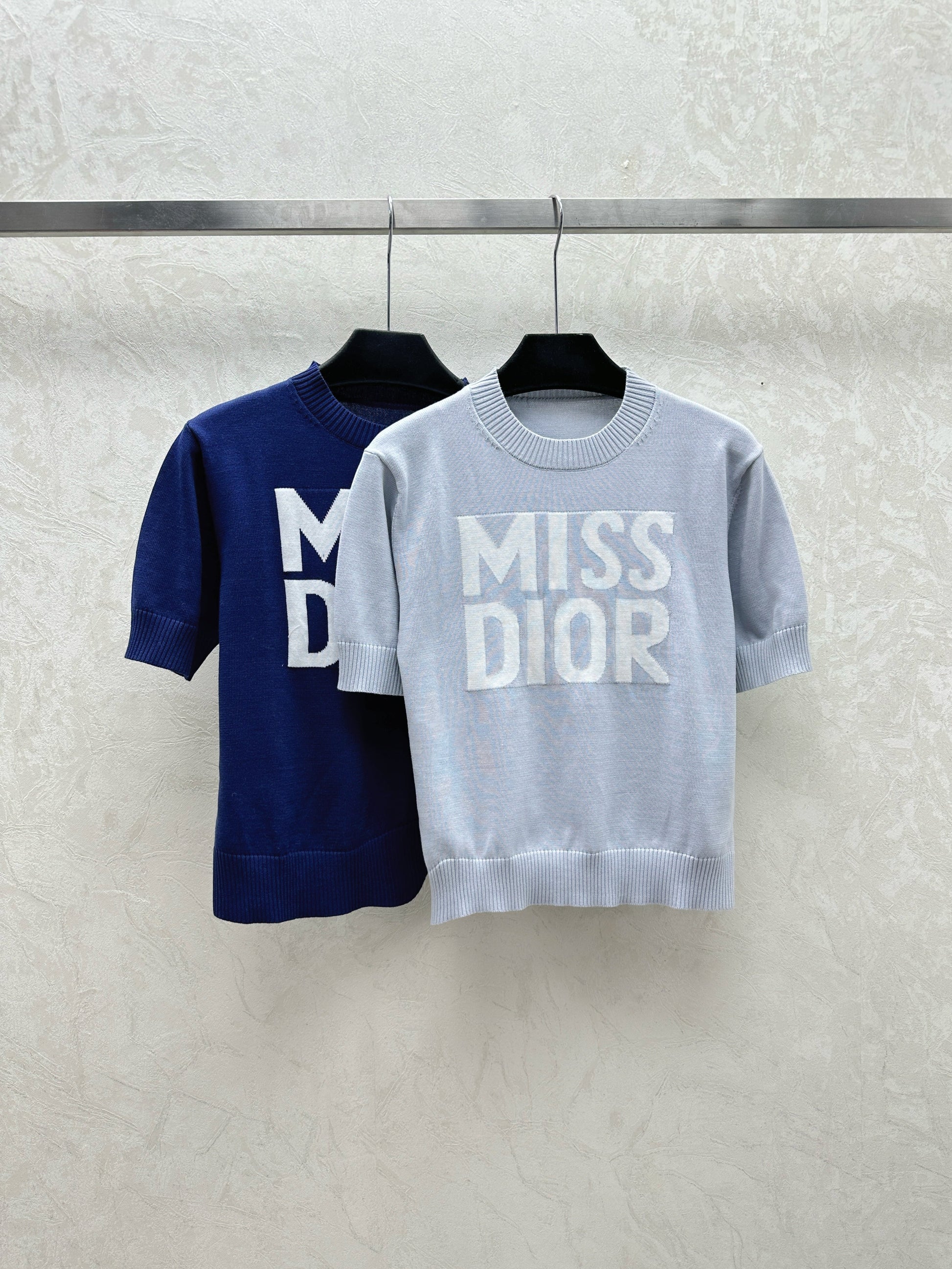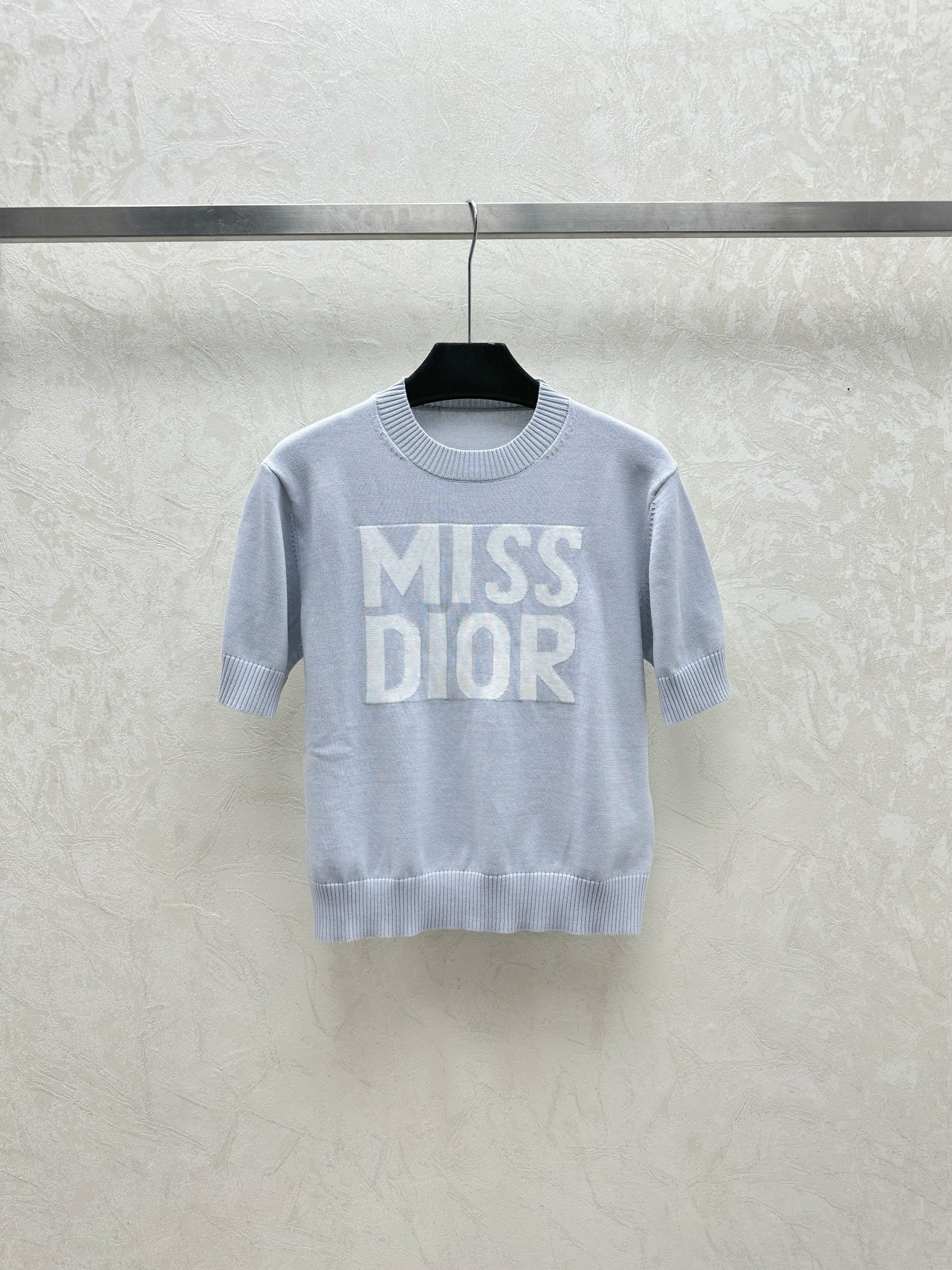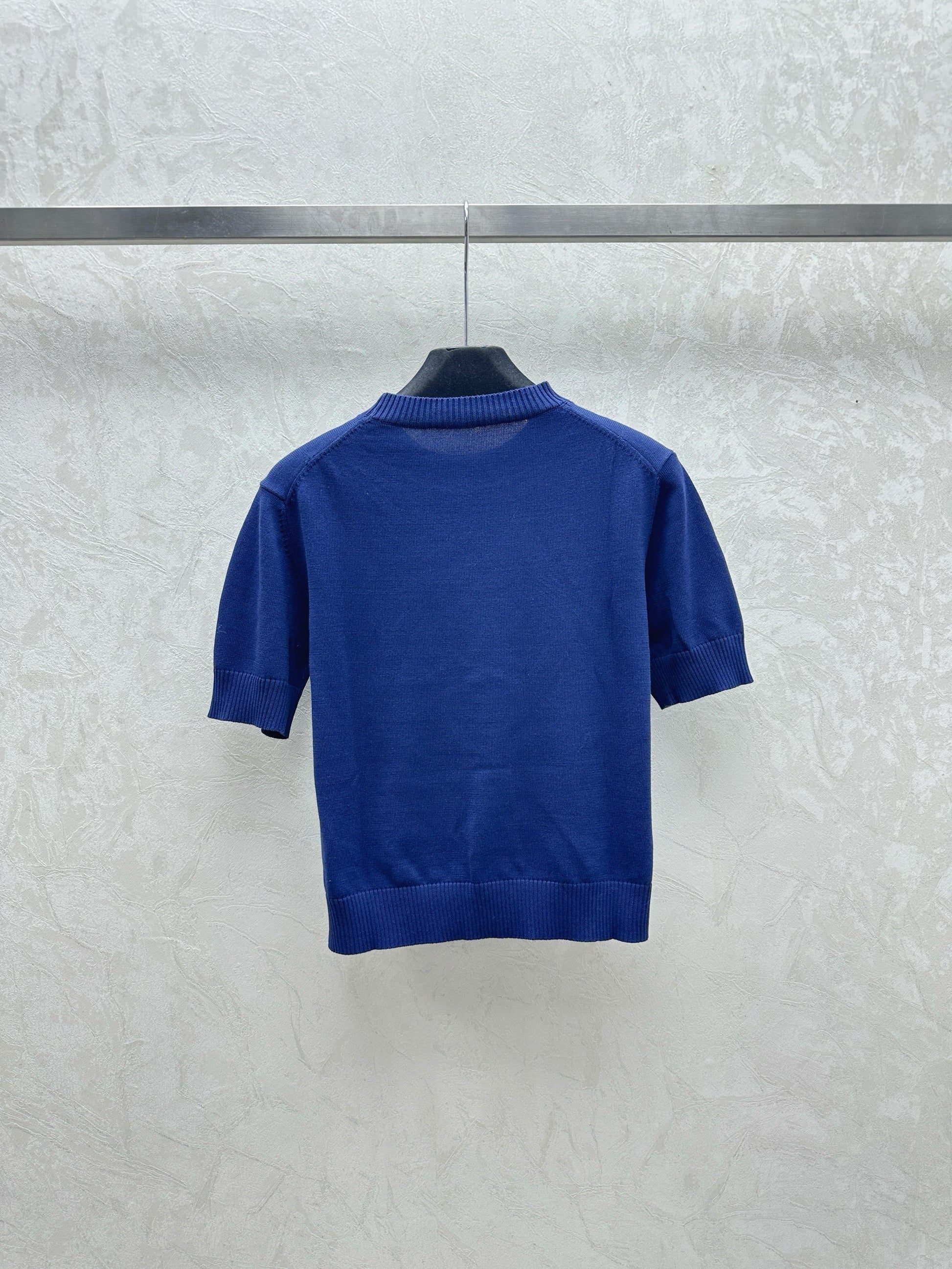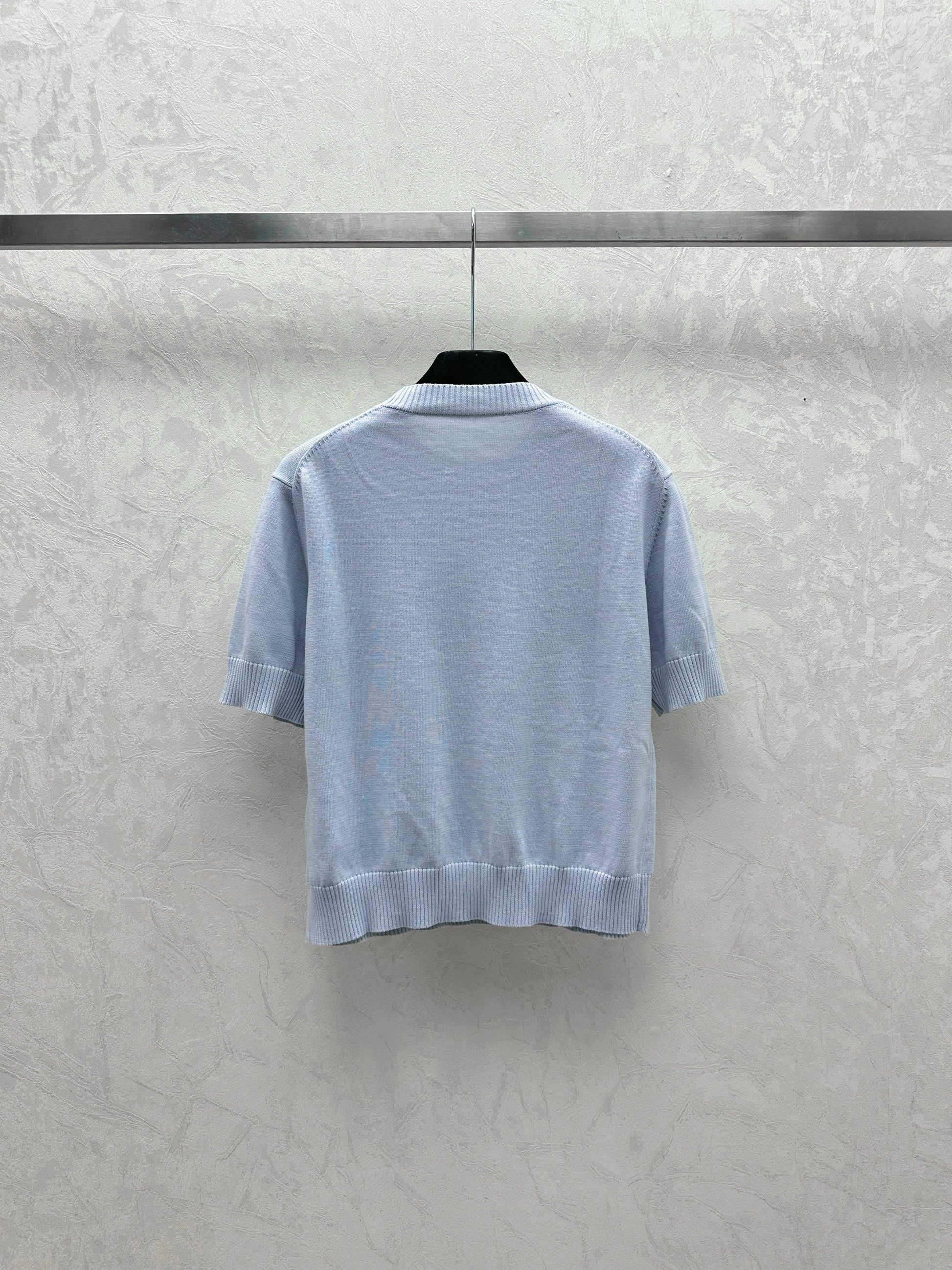 Simple contrast color knitted round neck short-sleeved top