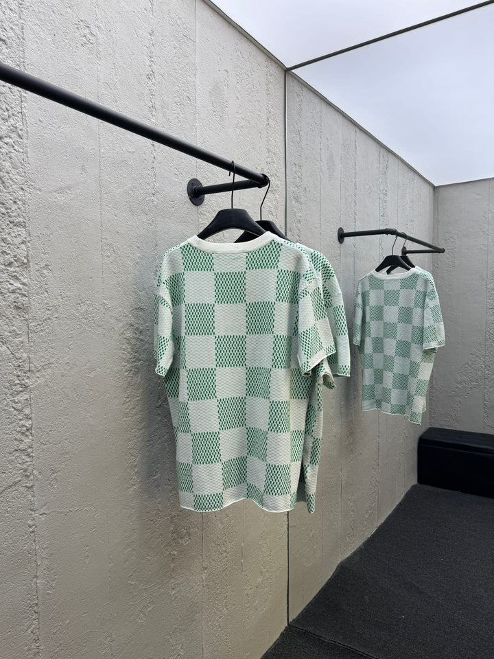 Green Checkerboard Jacquard Short Sleeve T-Shirt