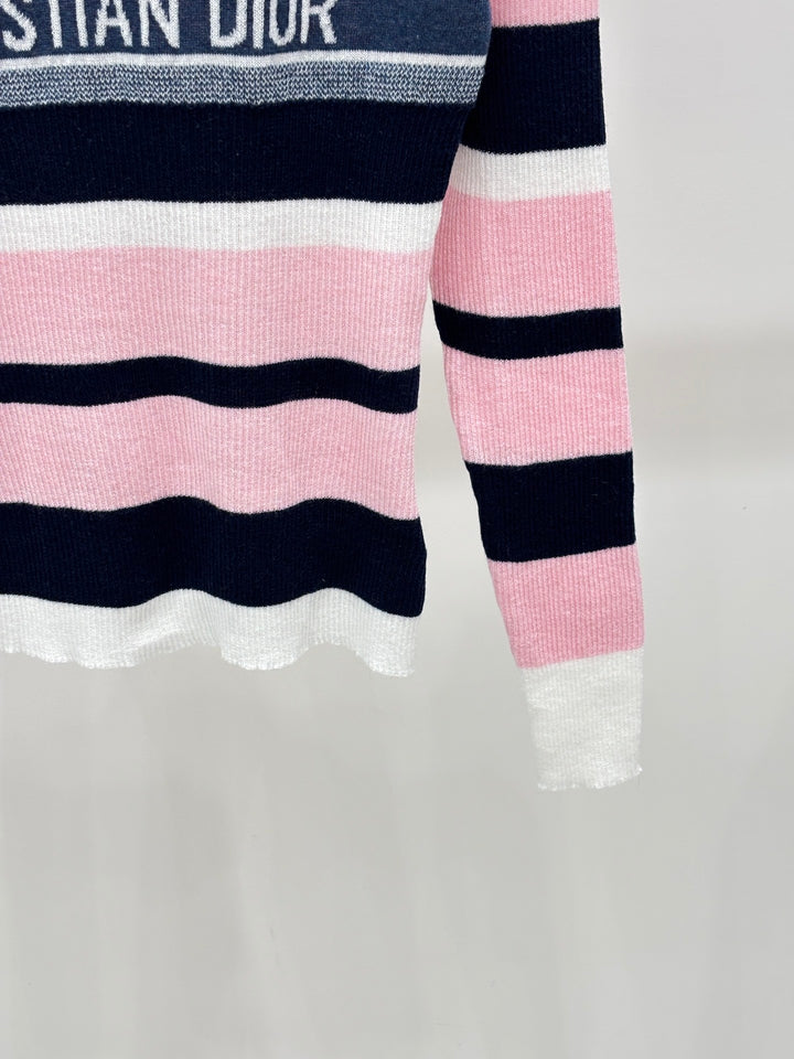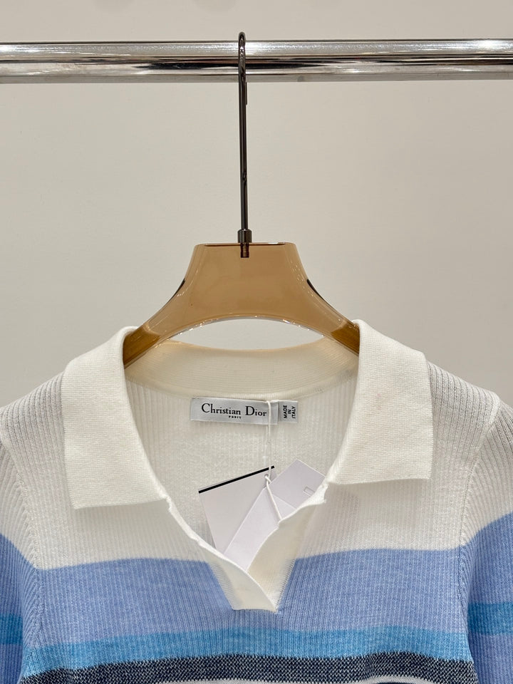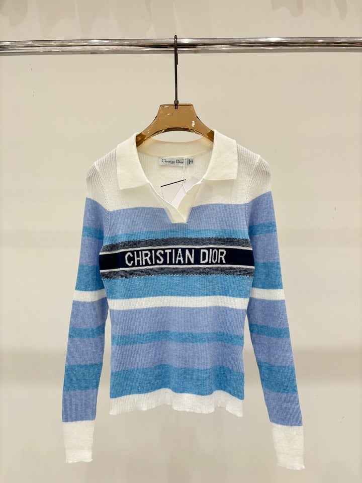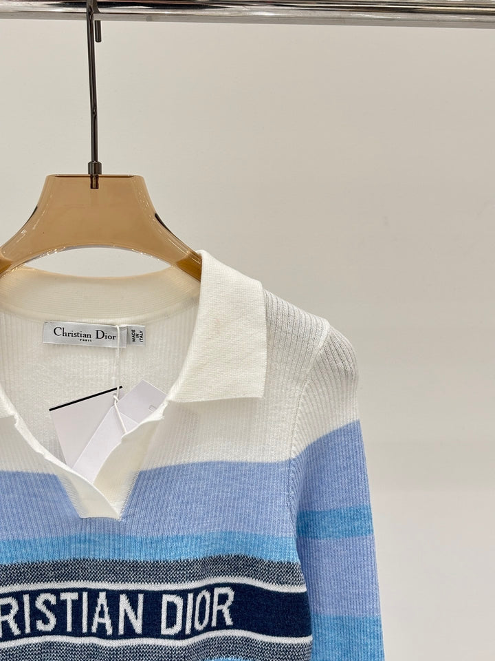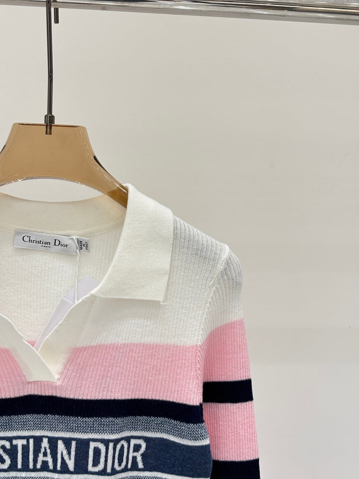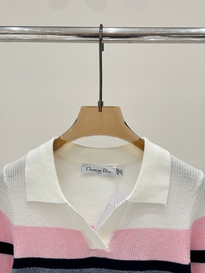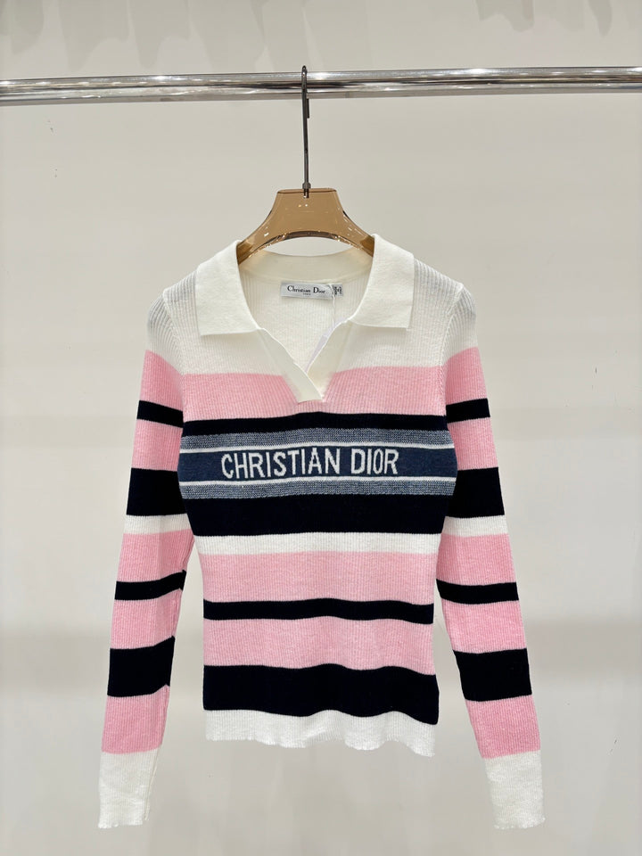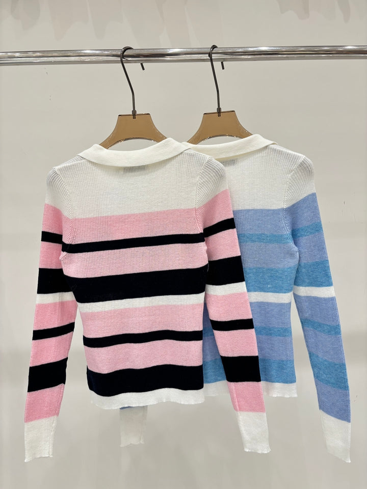 Half-collar color-blocked striped long-sleeved shirt