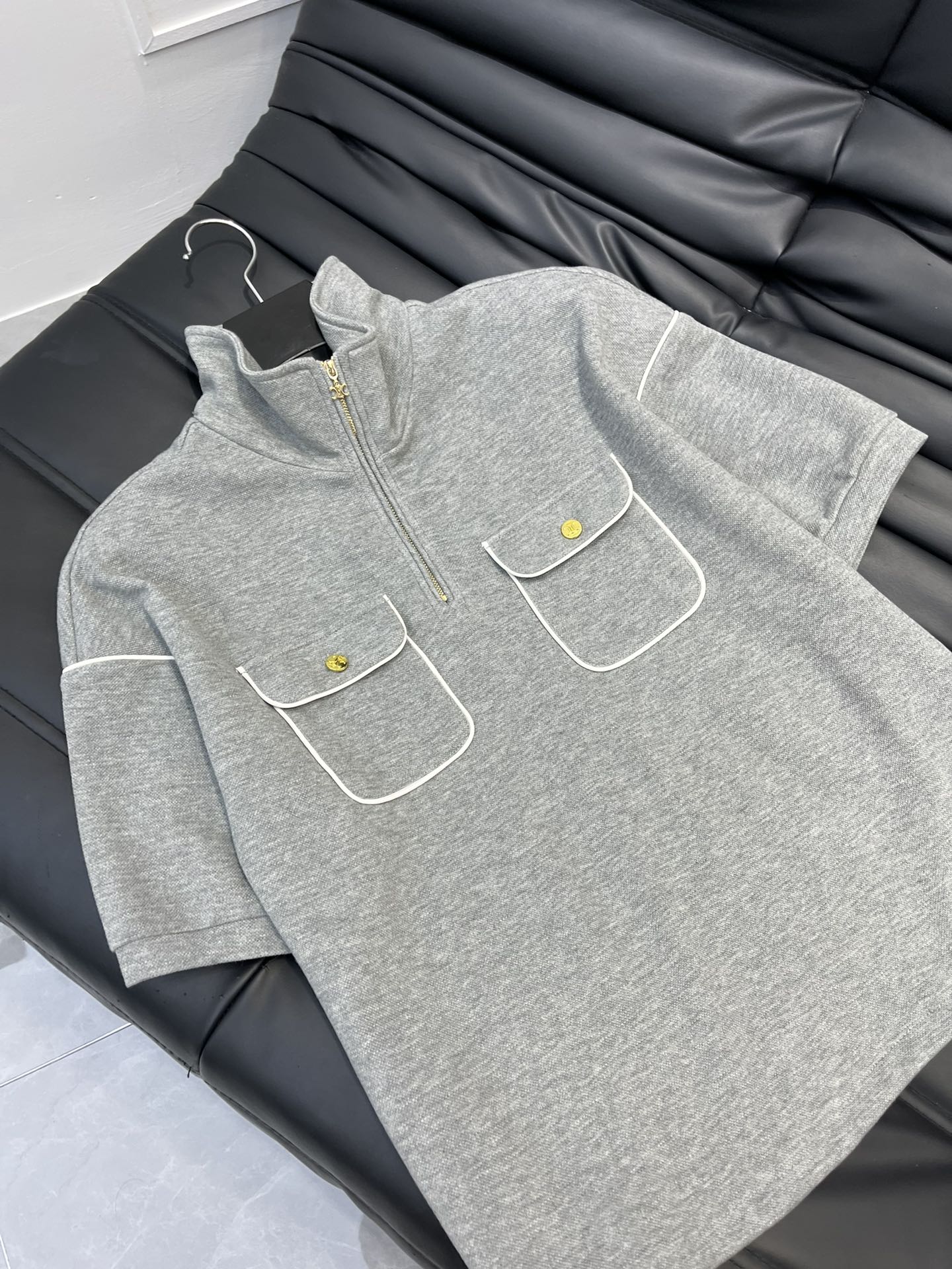 Customized cotton twill with glossy placket accents