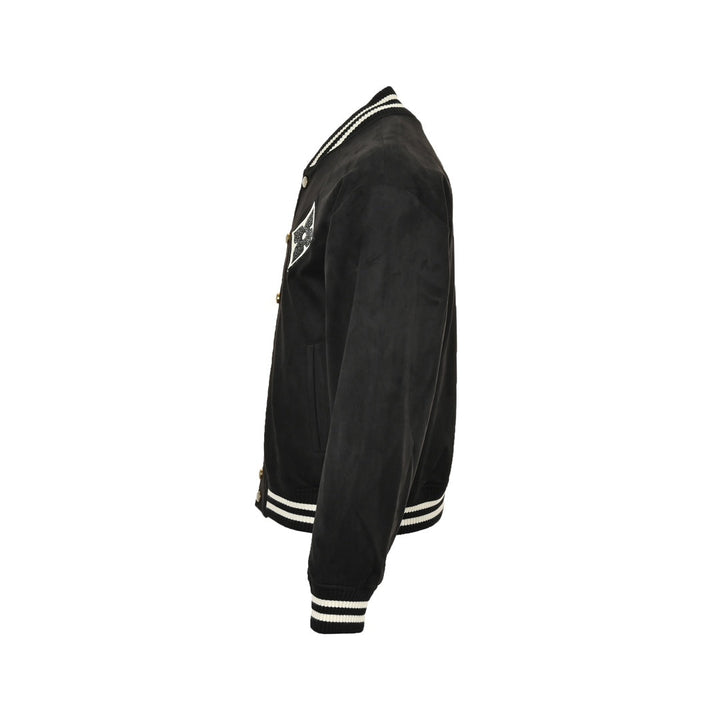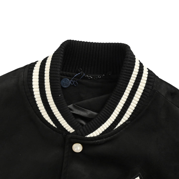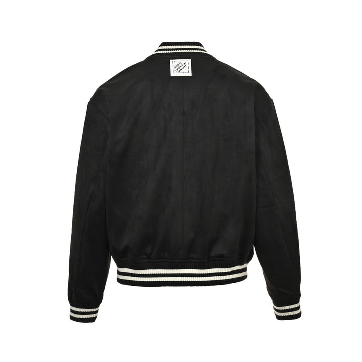 Hot rhinestoned four-leaf clover logo suede baseball jacket