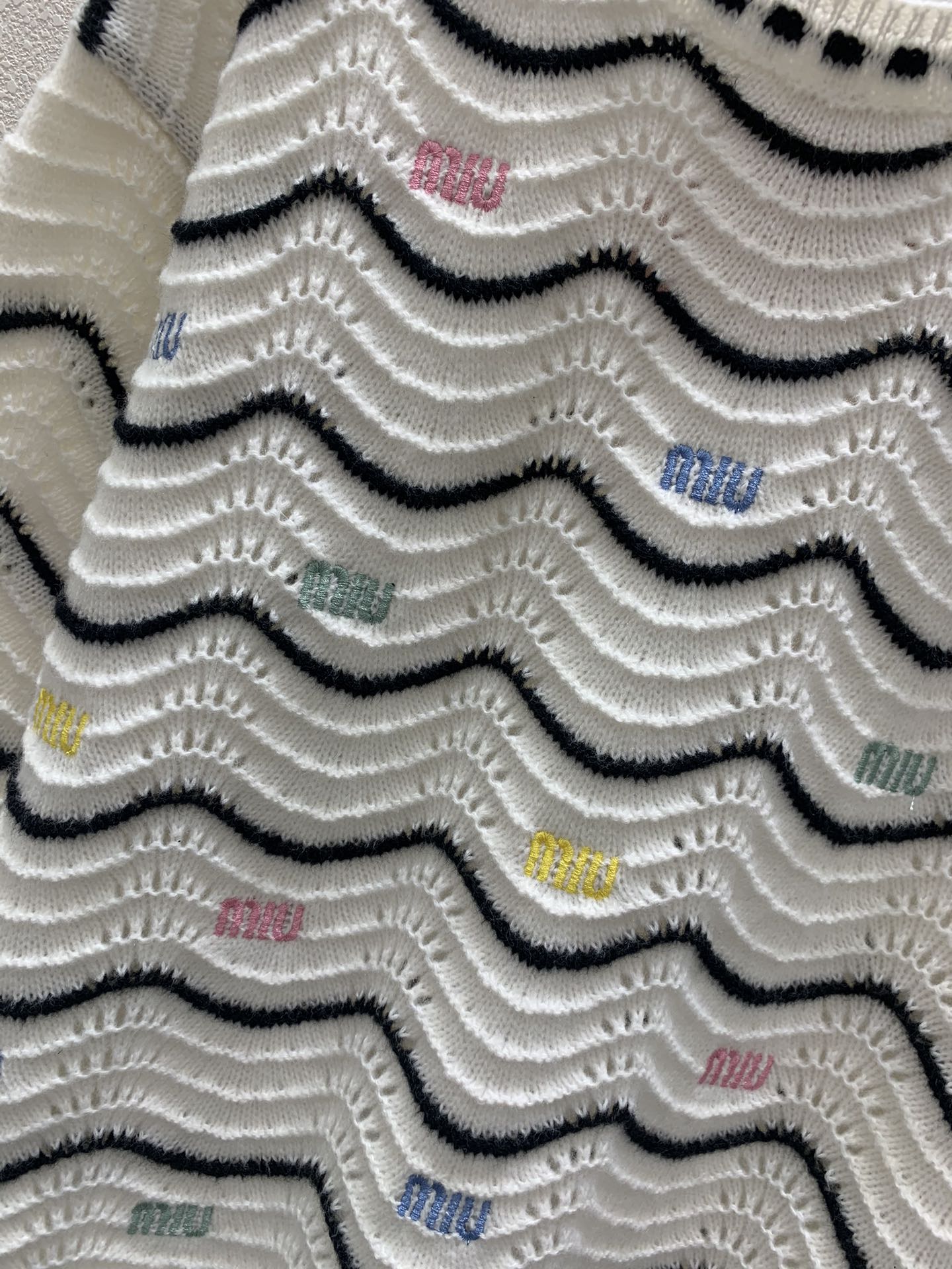 Knitted round neck pullover sweater 🆕 〰️ Striped patchwork design Letter logo colorful embroidery decoration Hollow design Simple and fashionable daily versatile Size sml