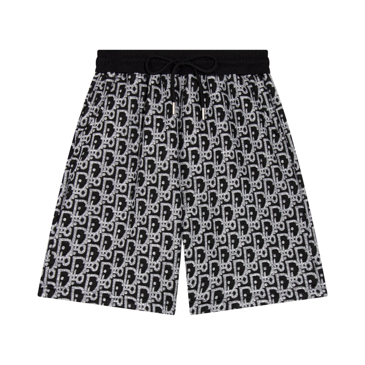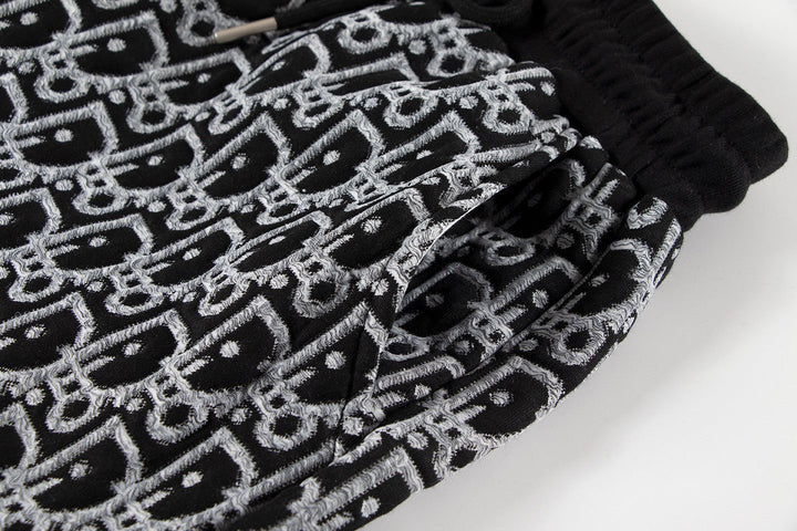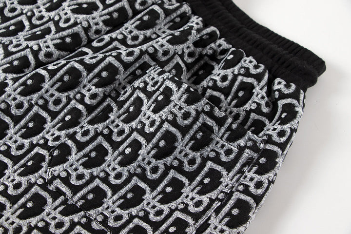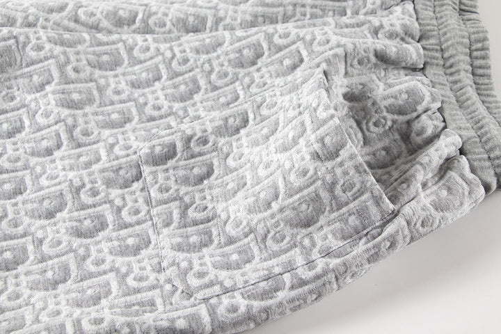 New knitted shorts, customized fabrics, jacquard knitting technology, embroidered logo. The version is tight and three-dimensional, with straight stripe splicing. The customized trouser cord hardware has strong texture and smoothness. The upper body is comfortable and breathable. It has a concave and convex three-dimensional feel. It is fashionable and casual to wear.