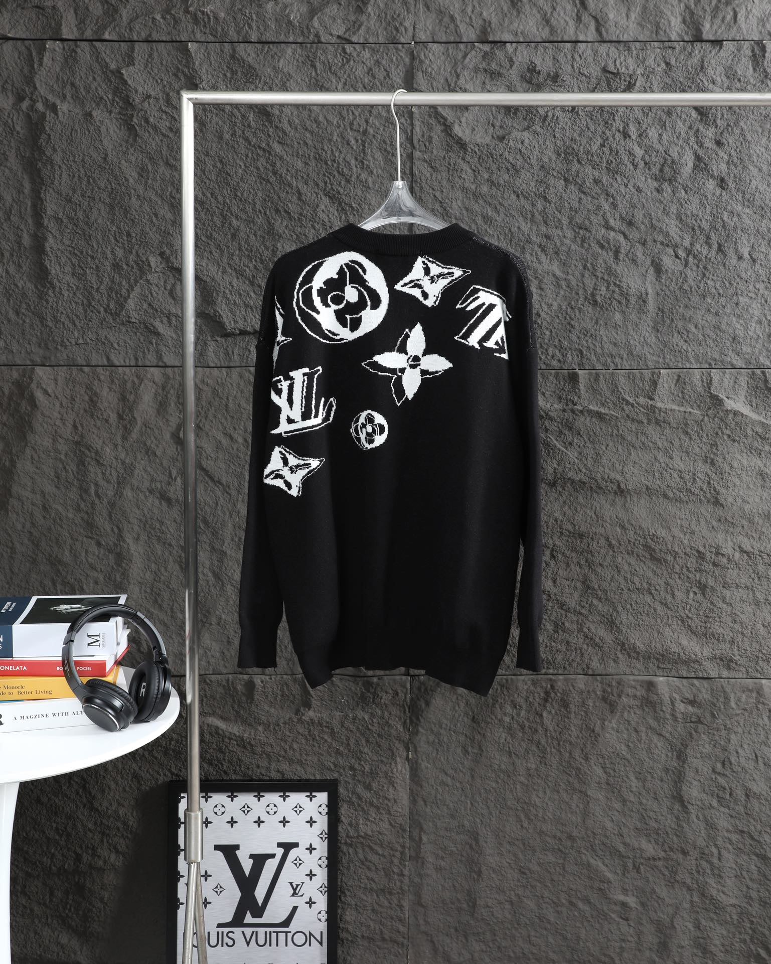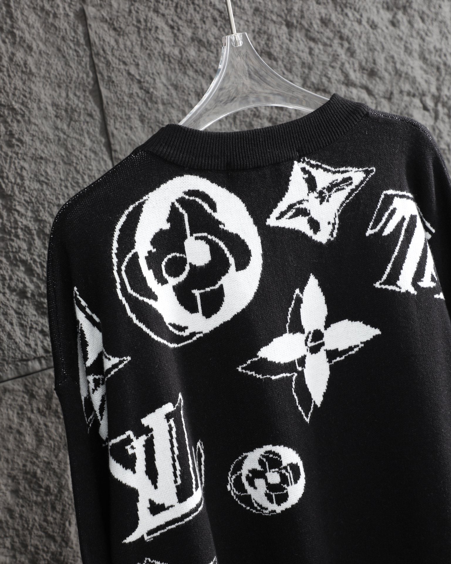 L jacquard all-over casual crew neck sweater
