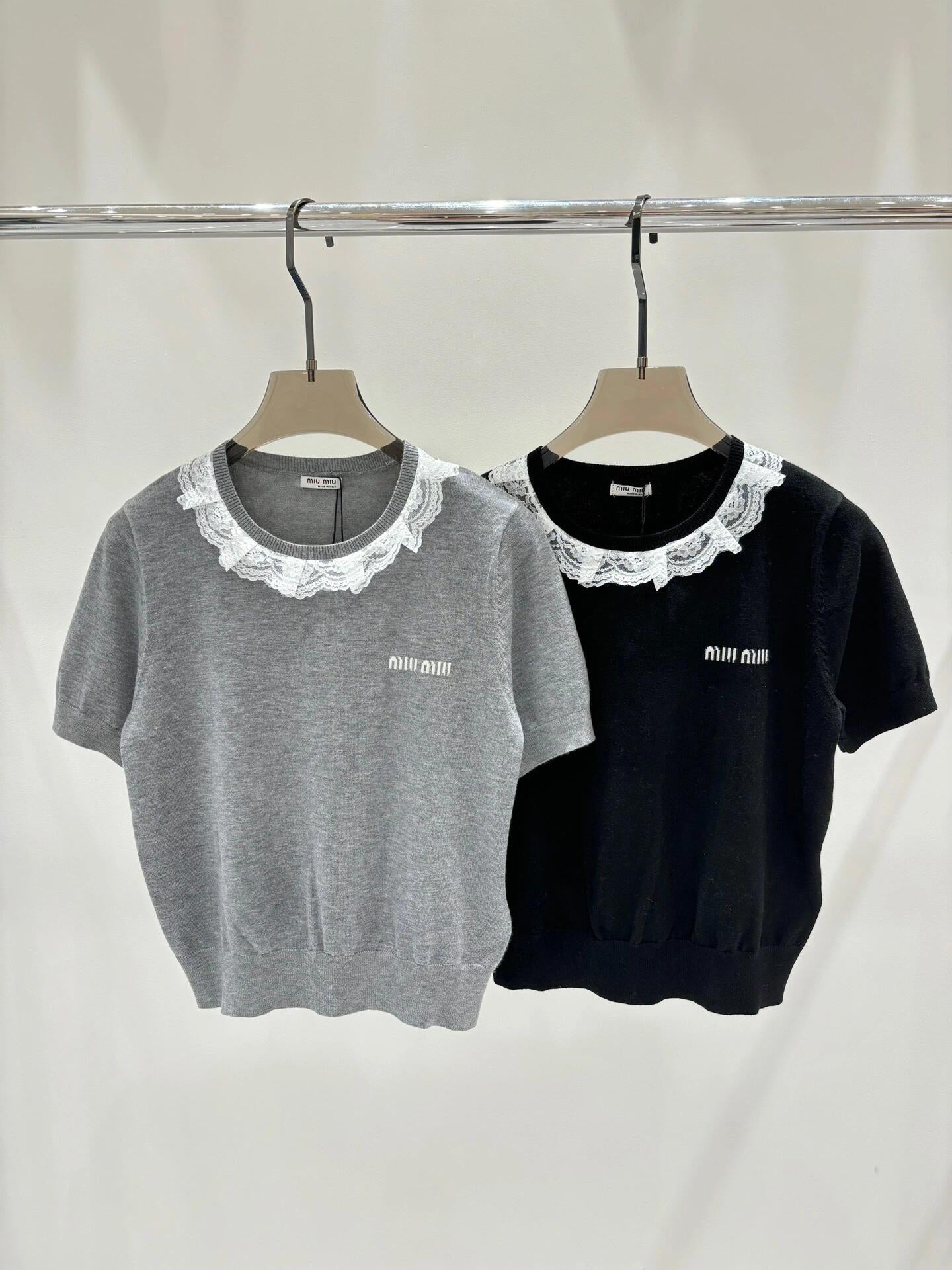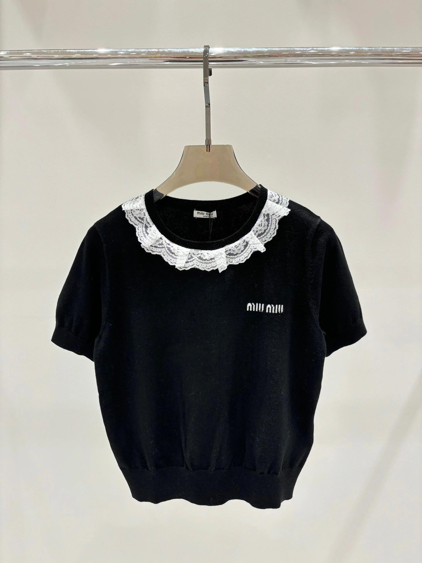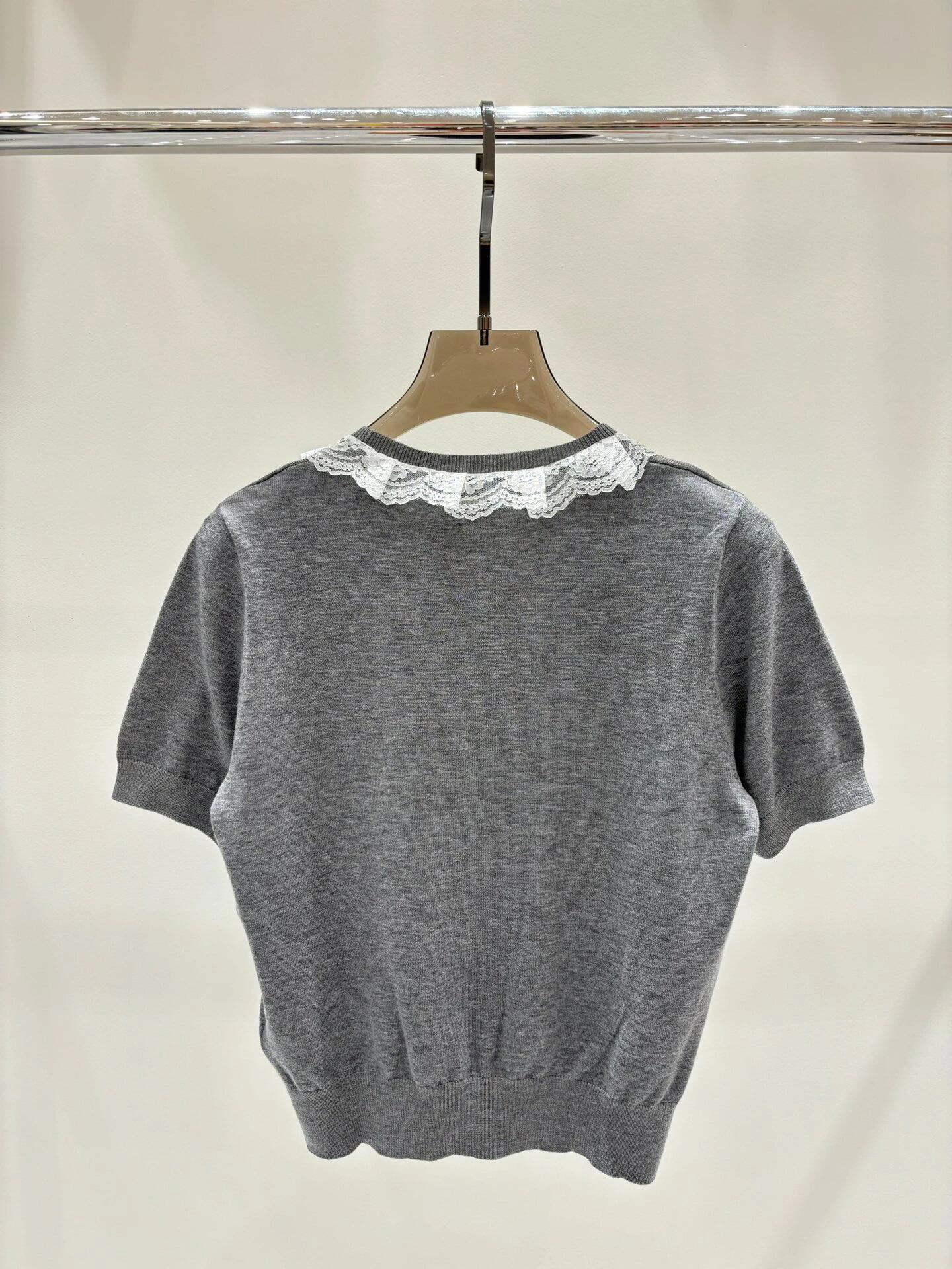 Lace round neck knitted short sleeves