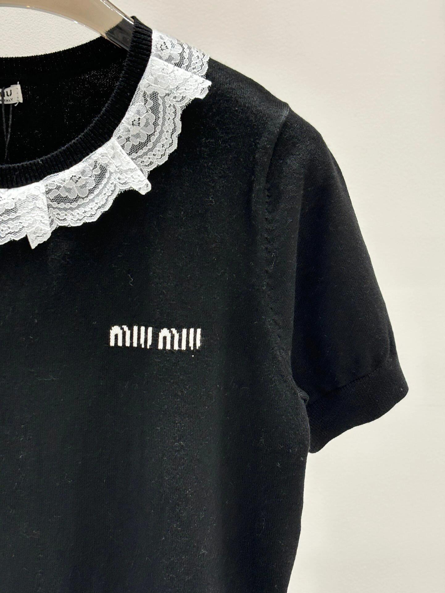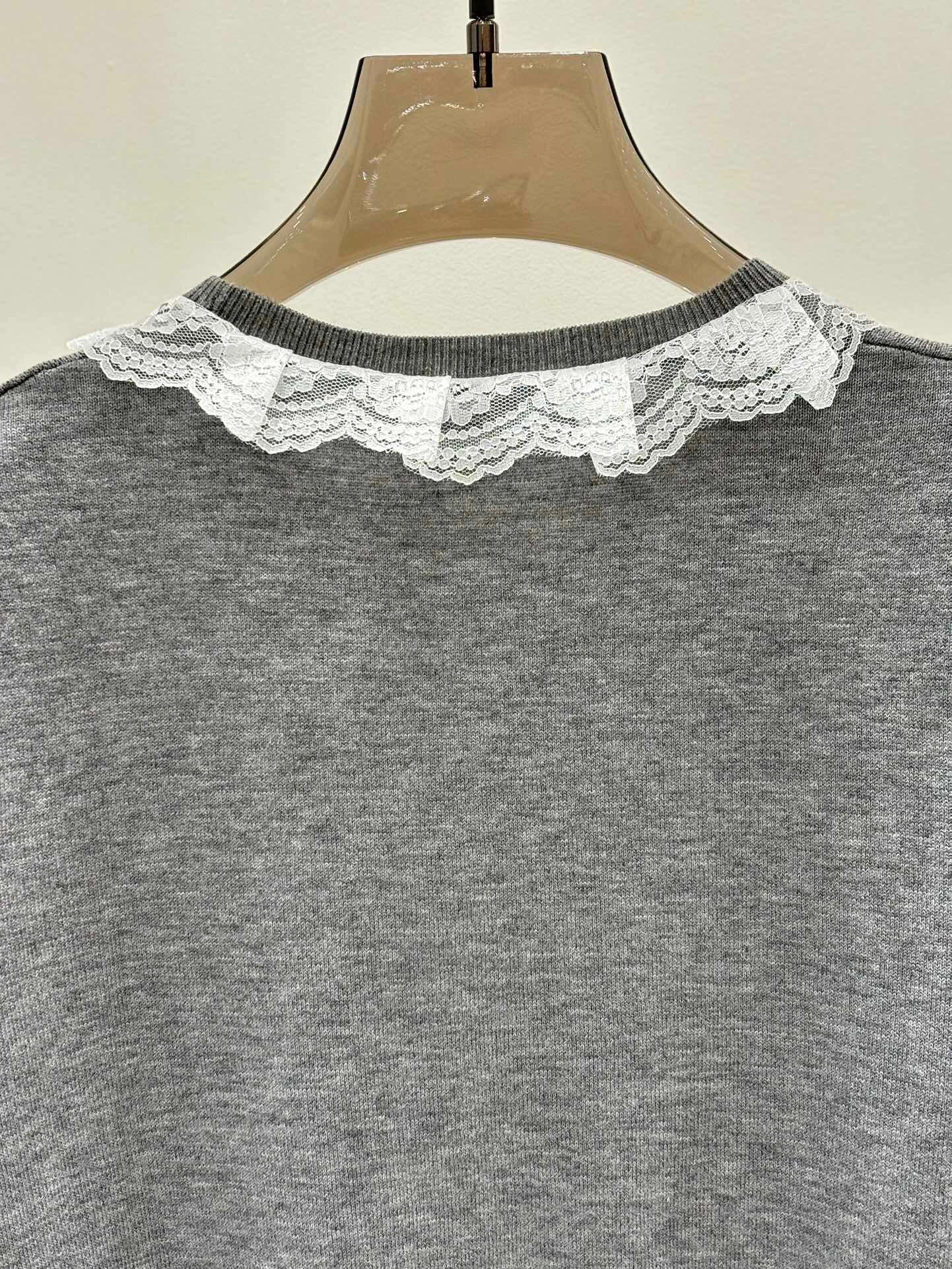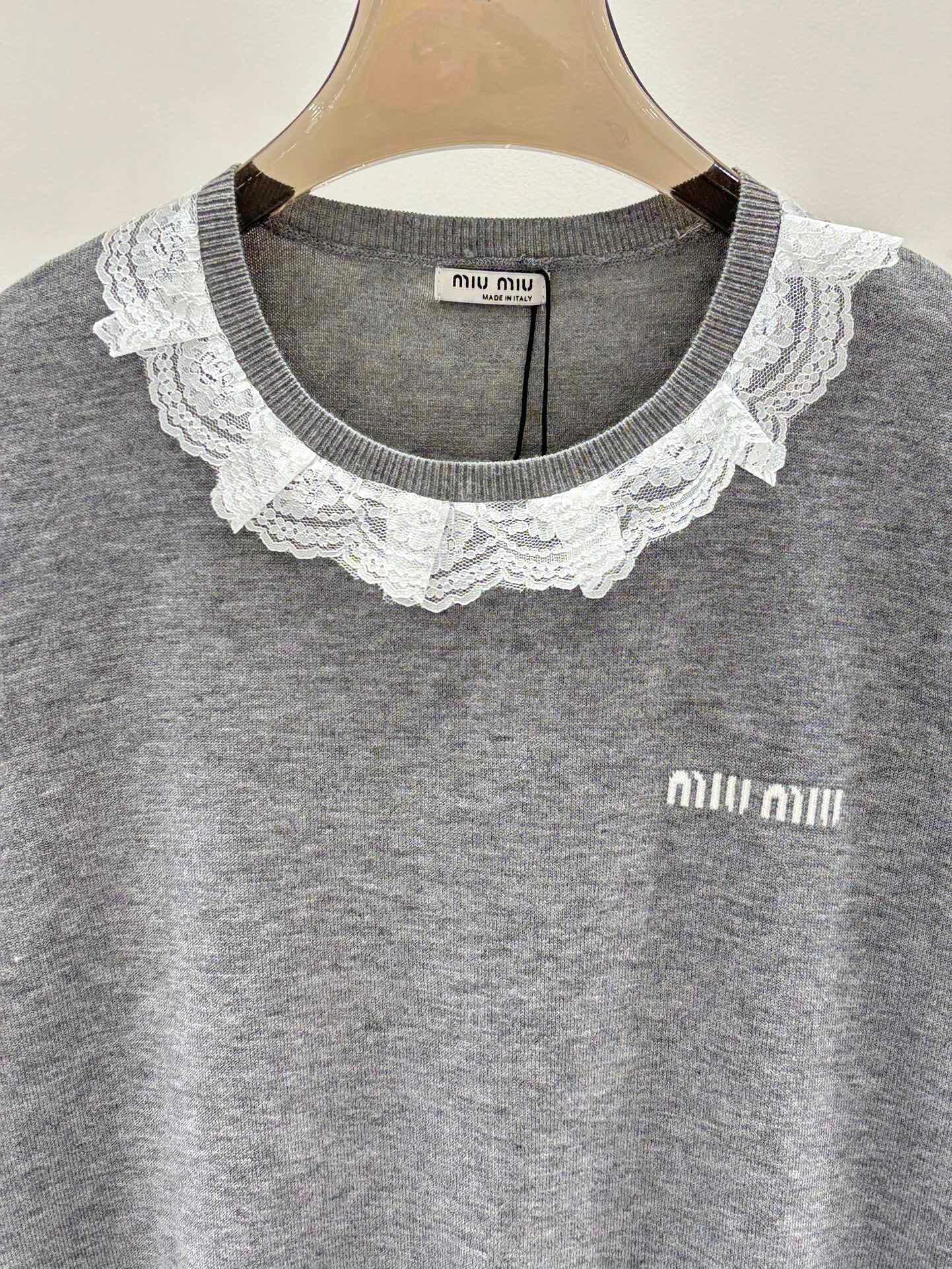 Lace round neck knitted short sleeves