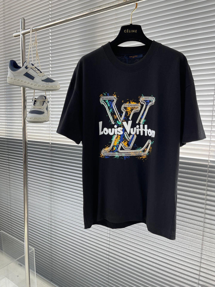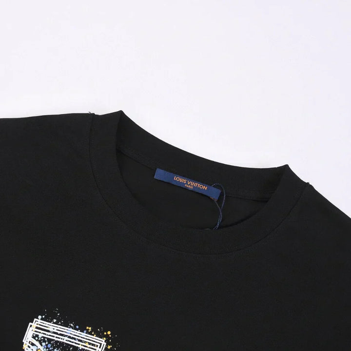 Letter printing + overlapping color inkjet printing pattern T-shirt