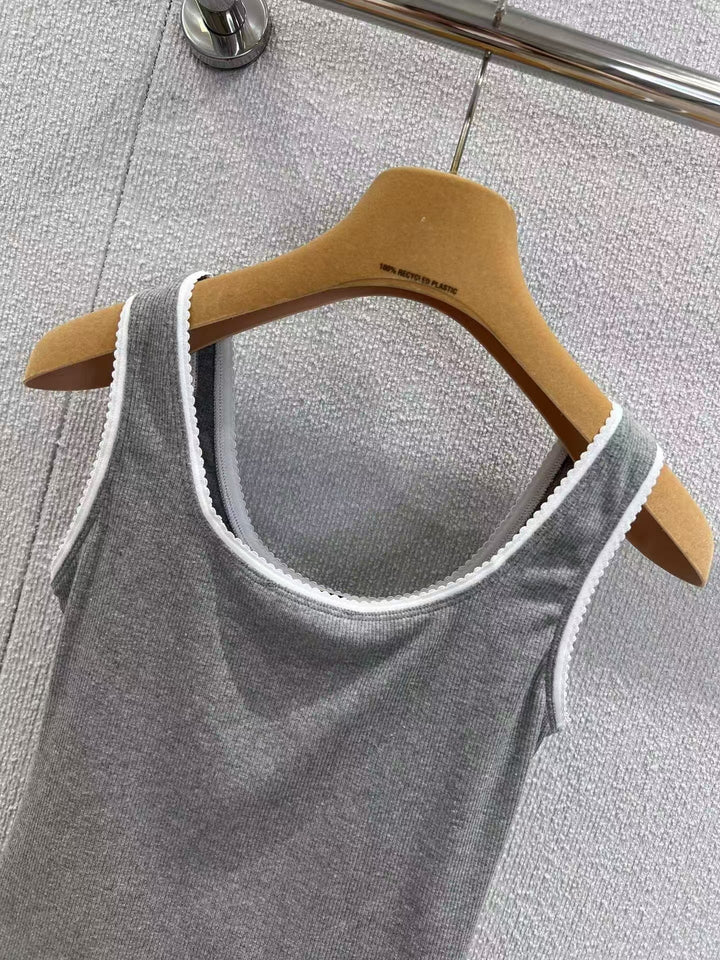 25Ss new spring and summer letter micro-logo lace vest, layering, wear your own unique style, simple and elegant base, seemingly casual but actually you can buy it directly with your eyes closed, it is not simple at all, high elastic ribbed cotton, high density, no matter how you pull it, it will not be deformed, it has a certain thickness, but it is not stuffy, custom knitted lace, it is very good to grasp the girl's temperament,