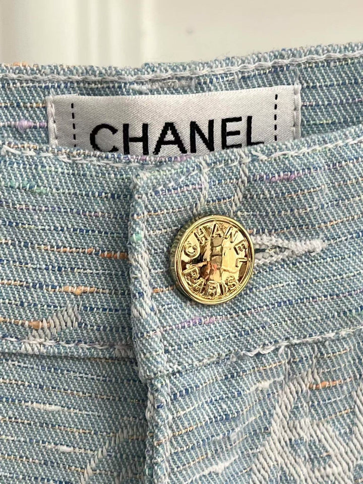 25Ss early spring new style light-colored jacquard all-over printed denim shorts丨Made of imported pure cotton presbyopia gold silk fabric. The texture is soft and comfortable. The light color is very suitable for spring and summer~ A super noble style. It can be worn casually and has a sense of light luxury. The jacquard all-over printed design highlights the brand style.